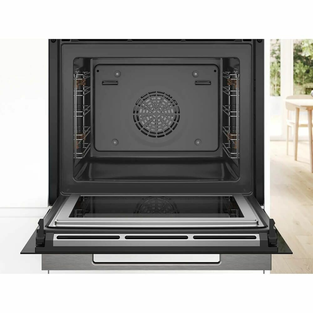 быстрый нагрев, добавление пара, поддержание тепла, подогрев посуды, размораживание, таймер, функция пароварки, Вентилятор охлаждения, Встроенная книга рецептов, Встроенные часы, Дисплей, Доводчик дверцы духовки, Дополнительное боковое освещение
