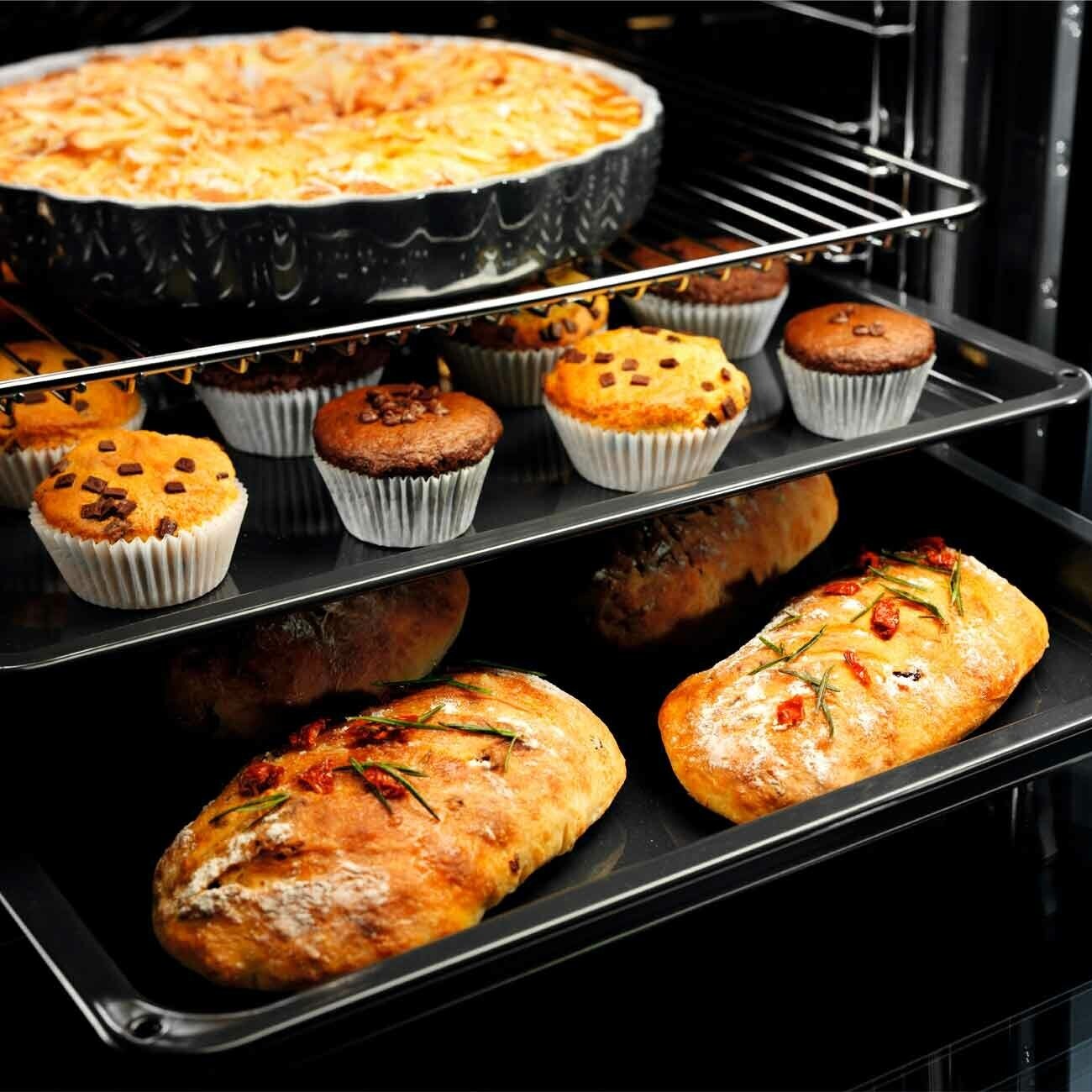 большой гриль, верхний нагрев + нижний нагрев, конвекция, нижний нагрев