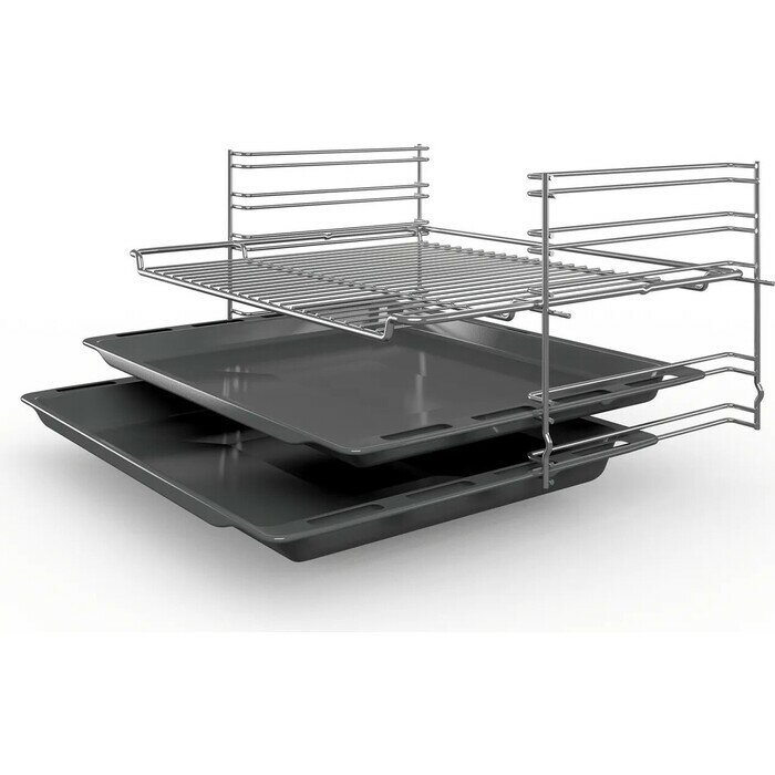 3D-горячий воздух плюс 3D-горячий воздух плюс Система «3D-горячий воздух плюс», которой оснащены духовые шкафы производства известных немецких компаний Bosch иSiemens, позволяет размещать врабочей камере противни сготовящимися блюдами натрех уровнях одновременно. Результат приготовления остается превосходным, адлительность готовки ирасход электроэнергии значительно уменьшаются. Такое приготовление возможно благодаря созданию трехмерного потока горячего воздуха отверхнего, нижнего икольцевого нагревательного элемента— последний размещается взадней части духового шкафа. Кним добавляется работа вентилятора, расположенного назадней стенке камеры. Сего помощью происходит принудительная циркуляция воздуха: его потоки распределяются повсей камере, втом числе имежду уровнями приготовления. Кудабы нибыл помещен противень сблюдом, горячий воздух будет обтекать его совсех сторон, нагревая равномерно. Потоки воздуха направлены так, что при этом непроисходит смешивания запахов или вкусов. Этот многофункциональный режим используется для приготовления большого количества выпечки, для быстрого разогрева духовки, апри более низких онтемпературах отлично подходит для сушки фруктов, ягод или зелени.