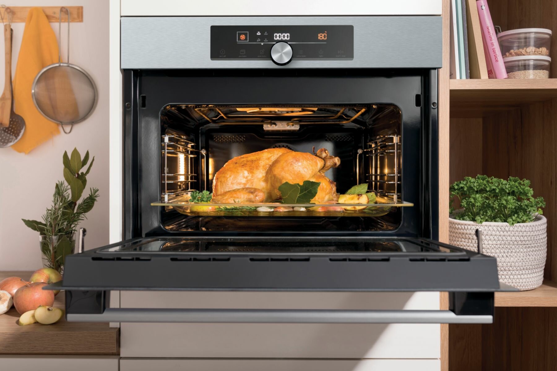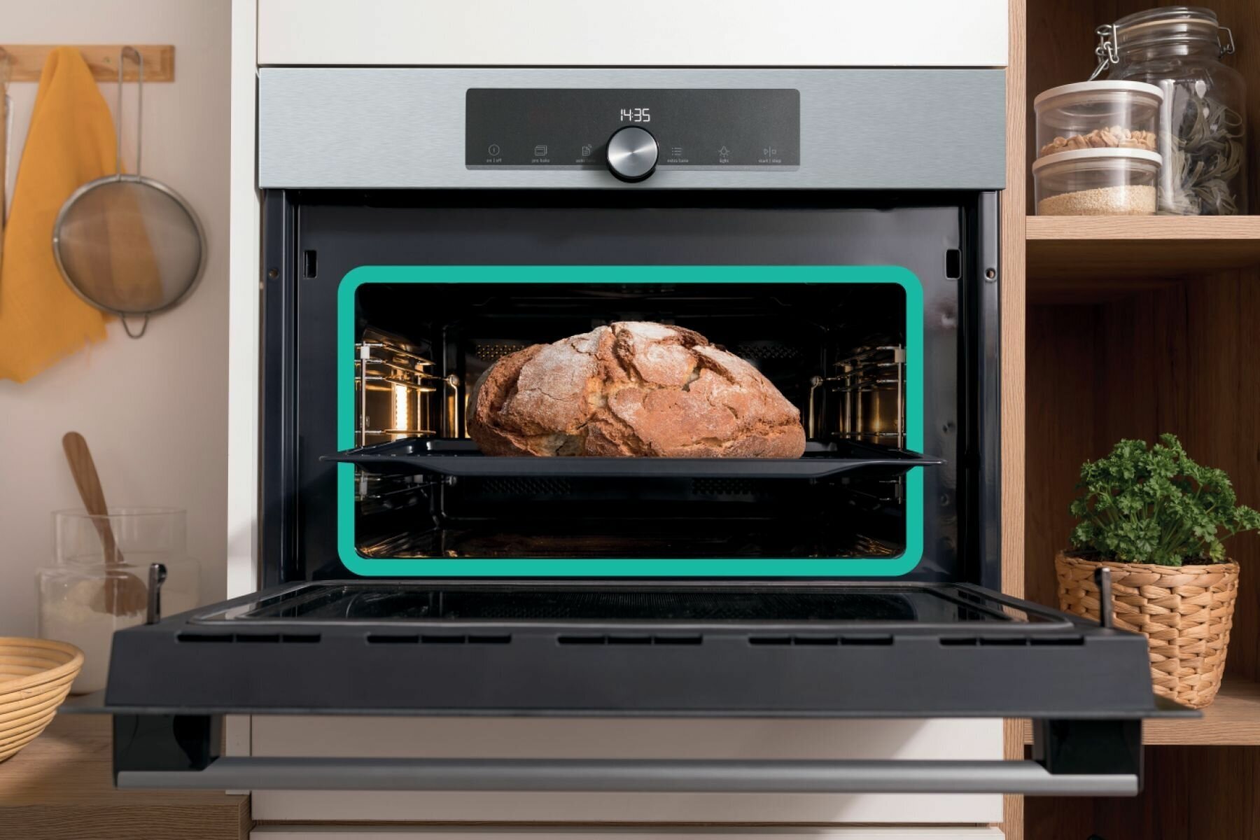 динамическая система охлаждения, термоэлектрический предохранитель, cводчатая форма духовки HomeMade, равномерное пропекание со всех сторон MultiFlow 360°, AutoBake