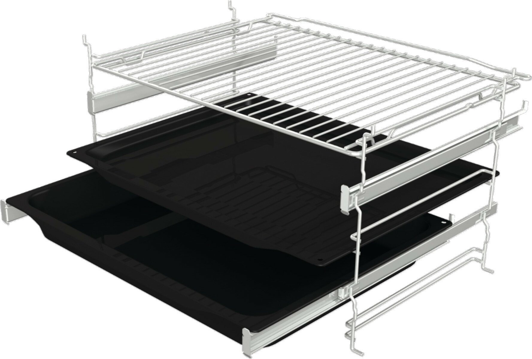Направляющие телескопические Телескопические направляющие на 2 уровнях Тип телескопических направляющих частично выдвижные Решетка Есть Мелкий противень, шт 1 Глубокий противень Есть