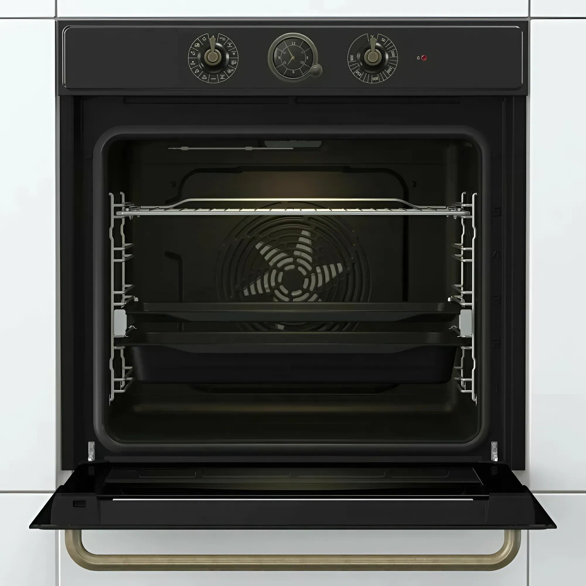 быстрый нагрев, добавление пара, размораживание, таймер, функция пароварки, Вентилятор охлаждения, Встроенные часы, Дизайн Ретро, Доводчик дверцы духовки, Полностью стеклянная внутренняя дверца