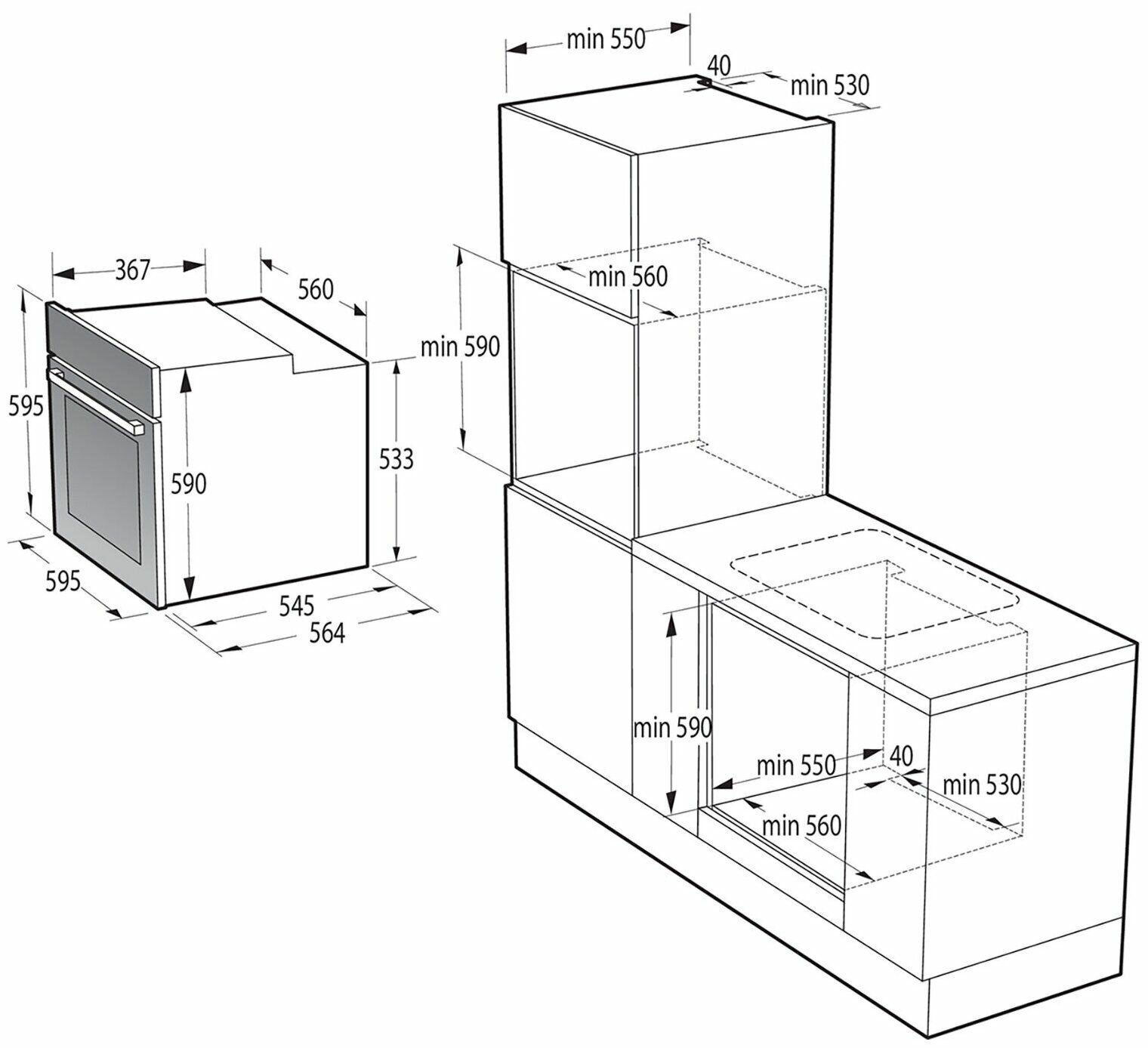 размеры ниши для встраивания: 59-60 х 56-56.4 х 55 см