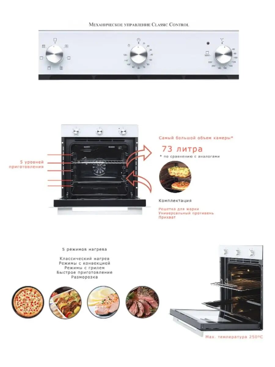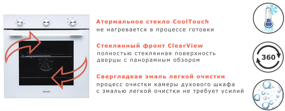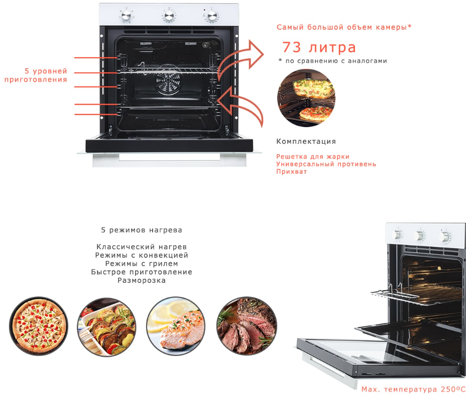 быстрый нагрев, таймер, Полностью стеклянная внутренняя дверца, Хромированные направляющие