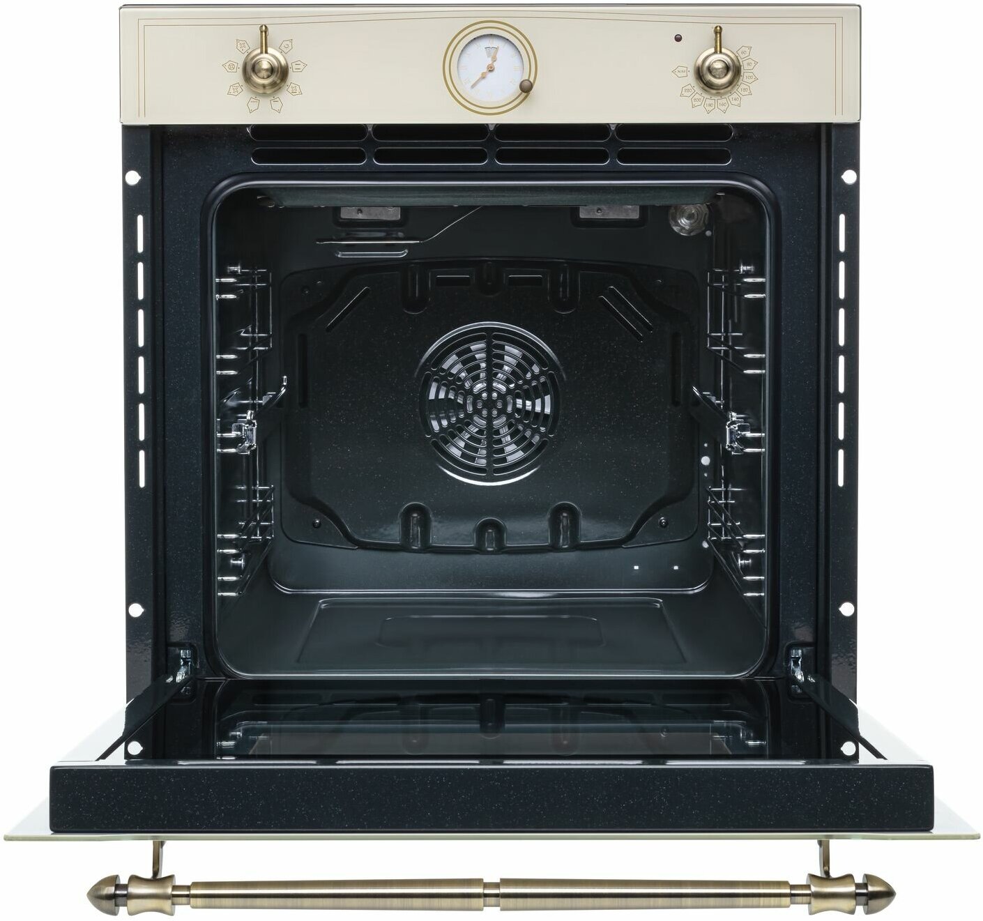 быстрый нагрев, размораживание, таймер, Вентилятор охлаждения, Встроенные часы, Дизайн Ретро, Доводчик дверцы духовки, Полностью стеклянная внутренняя дверца, звуковой сигнал, индикация времени приготовления, индикация режима работы