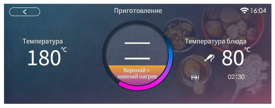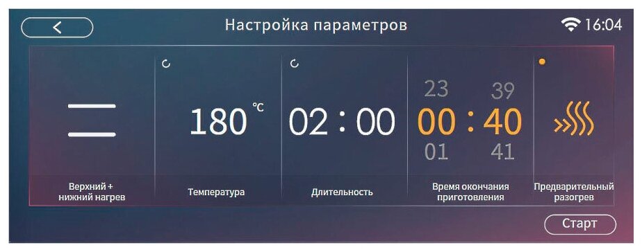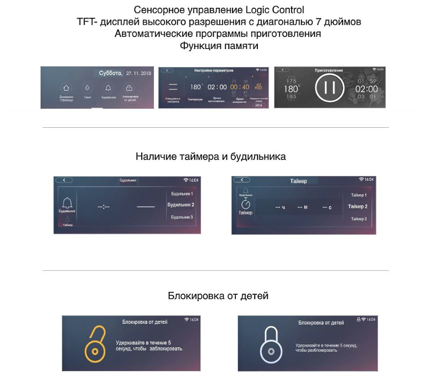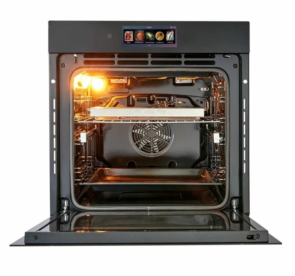 быстрый нагрев, размораживание, таймер, Вентилятор охлаждения, Встроенная книга рецептов, Встроенные часы, Дисплей, Доводчик дверцы духовки, Отсрочка запуска, Подсветка элементов управления, Термощуп, Электронный программатор