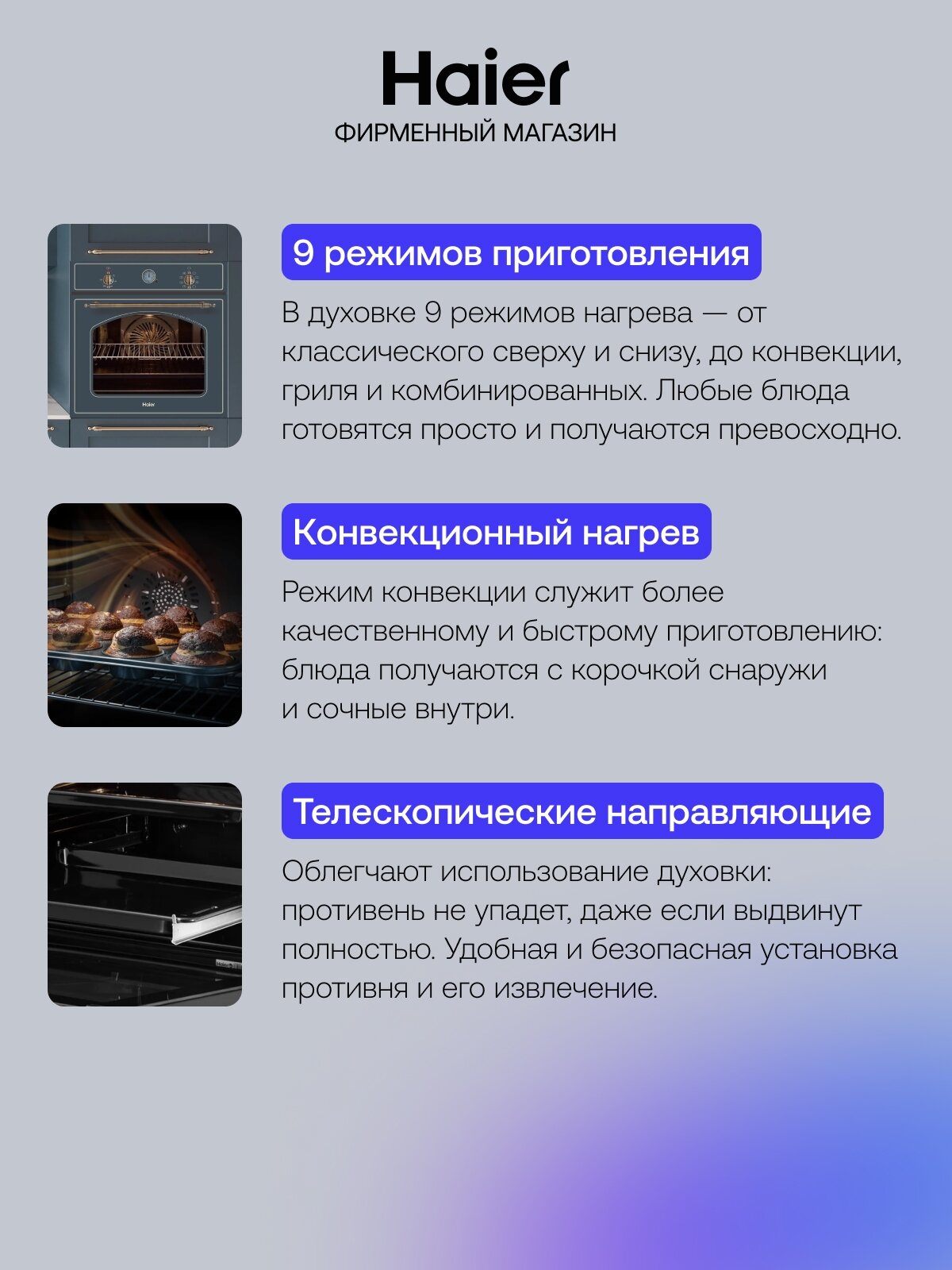 подсветка камеры, телескопические направляющие, часы, эмаль легкой чистки, подсветка камеры, телескопические направляющие, эмаль легкой чистки