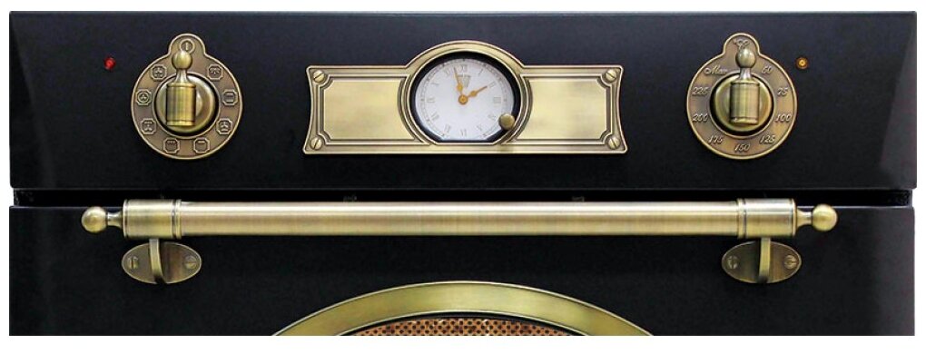 вертел, подсветка камеры, телескопические направляющие, часы, эмаль легкой чистки, аналоговые часы