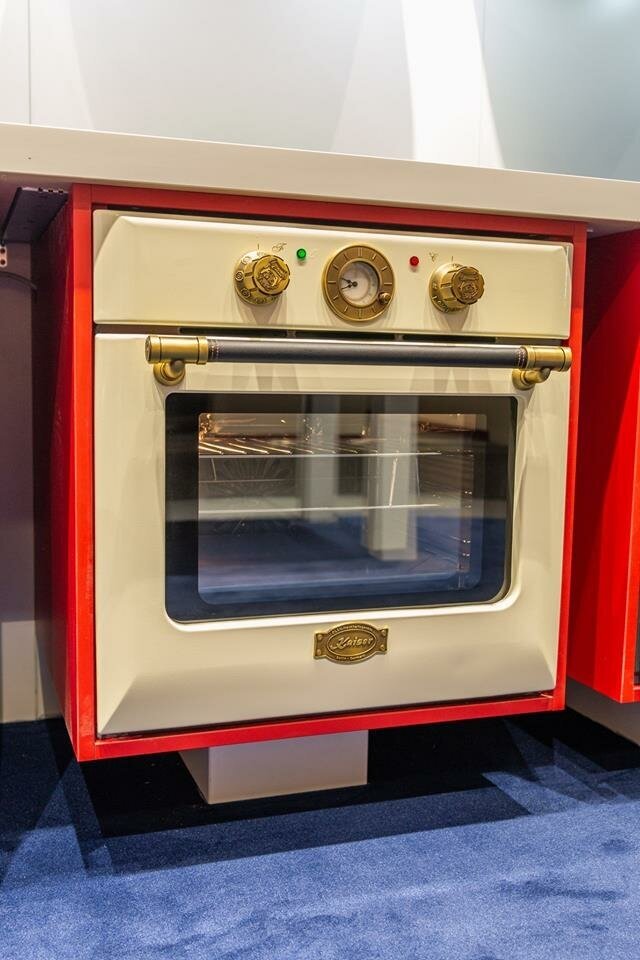 Вентилятор охлаждения, Дизайн Ретро, Дисплей, Полностью стеклянная внутренняя дверца, Рецепты на двери, Хромированные направляющие