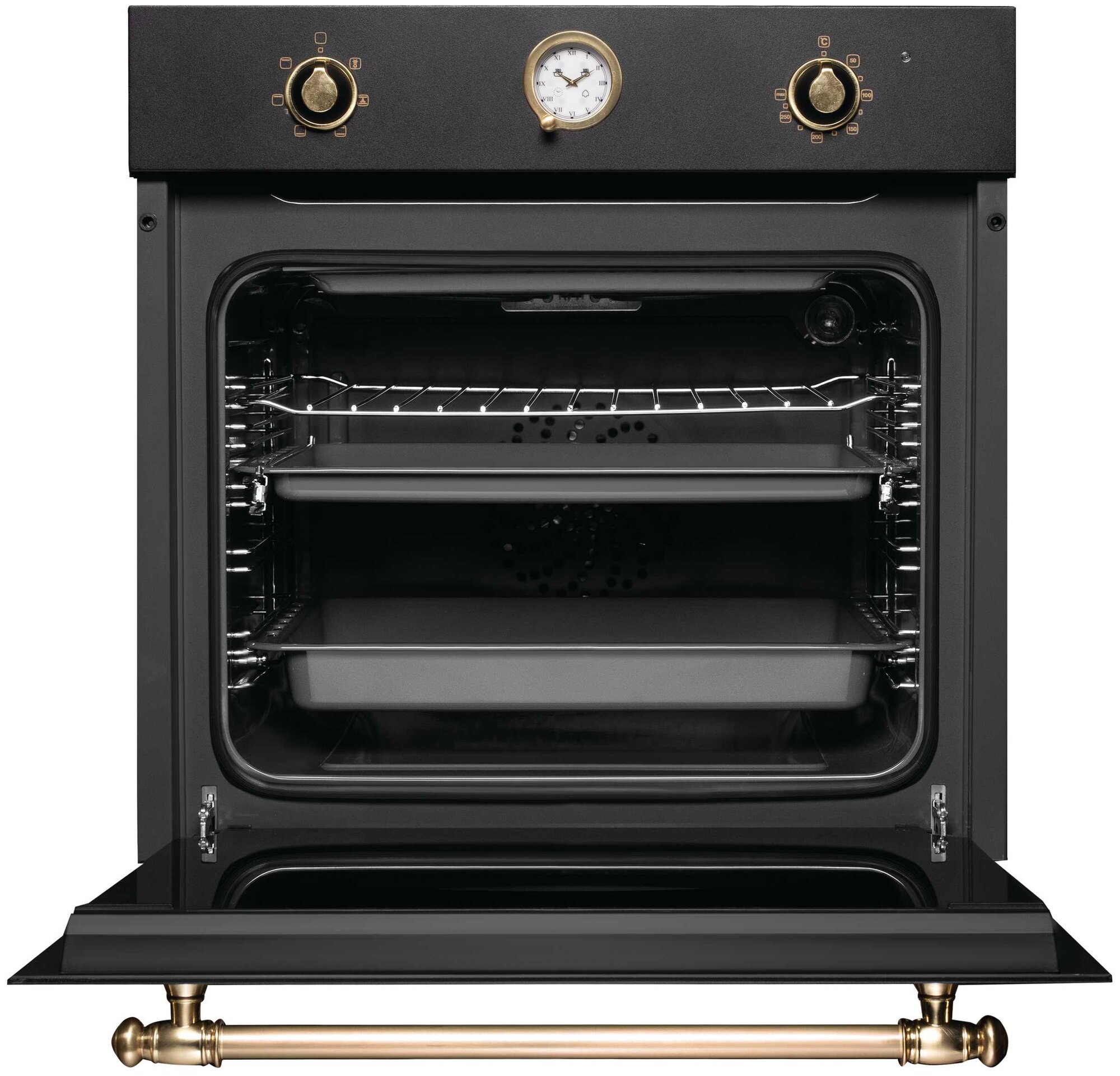 быстрый нагрев, поддержание тепла, размораживание, таймер, функция пароварки, Вентилятор охлаждения, Встроенные часы, Дизайн Ретро, Хромированные направляющие