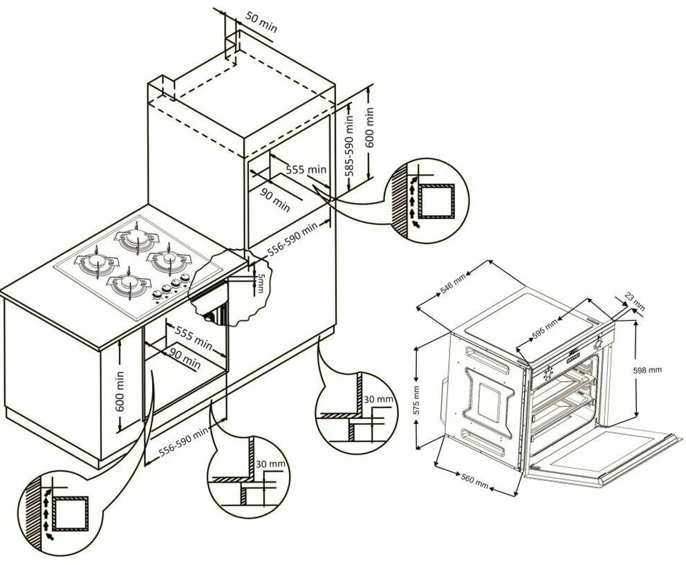 вертел, дисплей, подсветка камеры, тангенциальное охлаждение, телескопические направляющие, часы, эмаль легкой чистки, часы, подсветка камеры, телескопические направляющие, дисплей, электронные часы