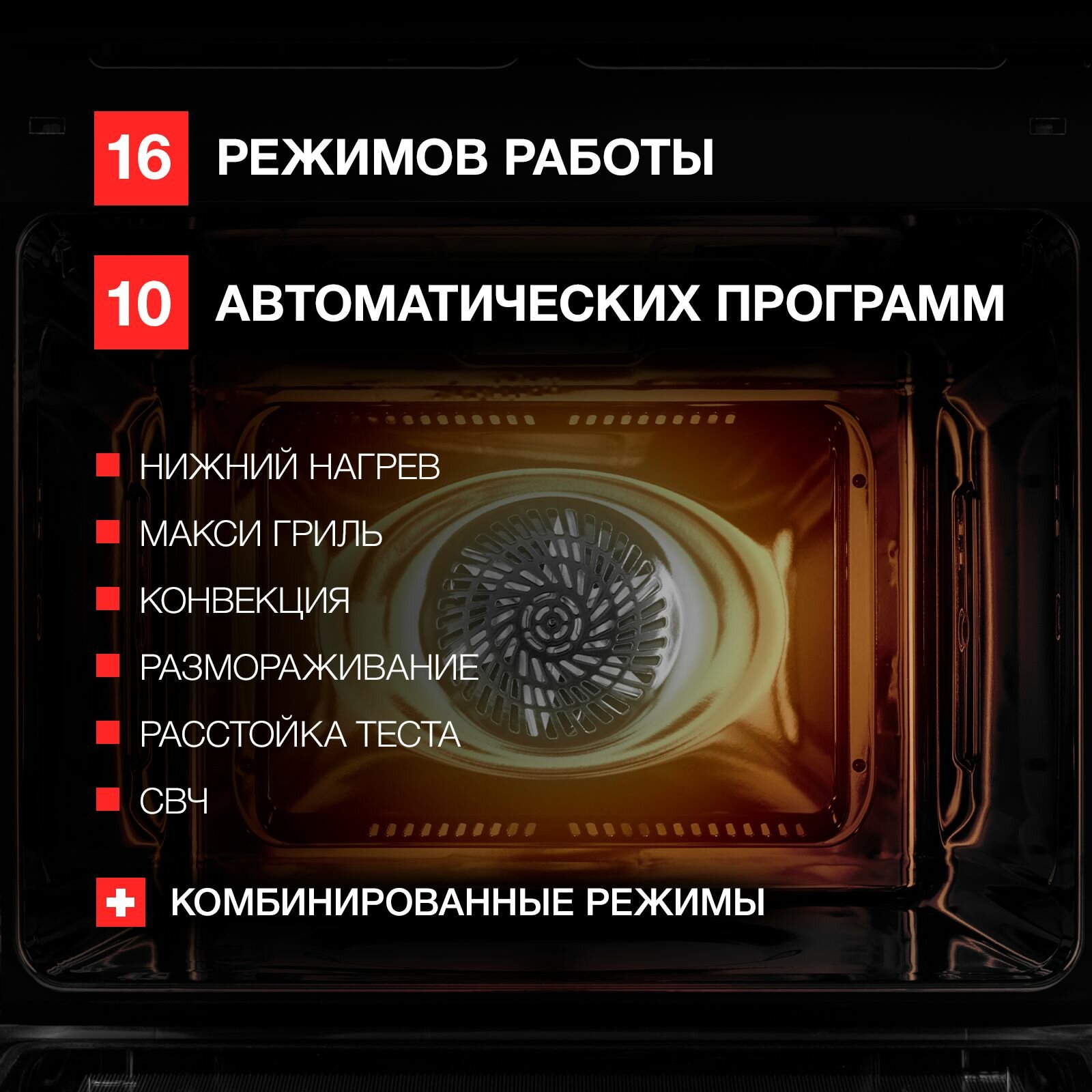 большой гриль, верхний нагрев + нижний нагрев, нижний нагрев, нижний нагрев + конвекция