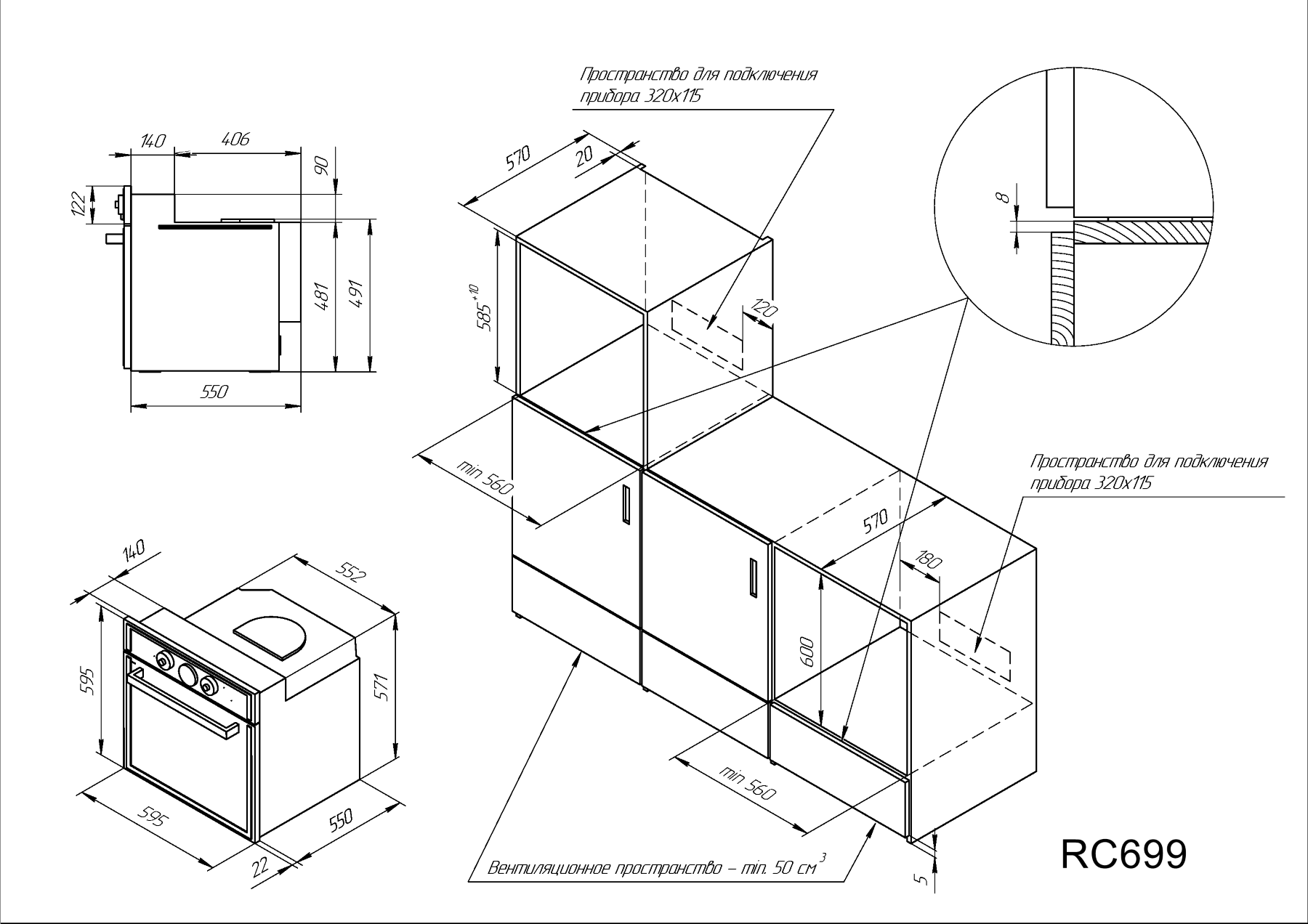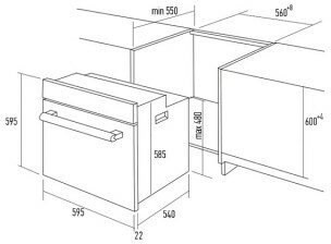 гриль и нижний нагрев, традиционный нагрев с конвекцией; режим турбо; тип часов: аналоговые; вентилятор охлаждения; цвет фурнитуры бронза; очистка духовки гидролизная, каталитическая (задняя стенка); эмаль легкой очистки Crystal Clean; направляющие для противней хромированные, съемные; съемная дверца духового шкафа; доводчик двери, съемное внутреннее стекло; размер ниши для встраивания под столешницу (ВхШхГ), мм 600×560×570; размер ниши для встраивания в колонну (ВхШхГ), мм 585(+10)x560×570; доводчик двери