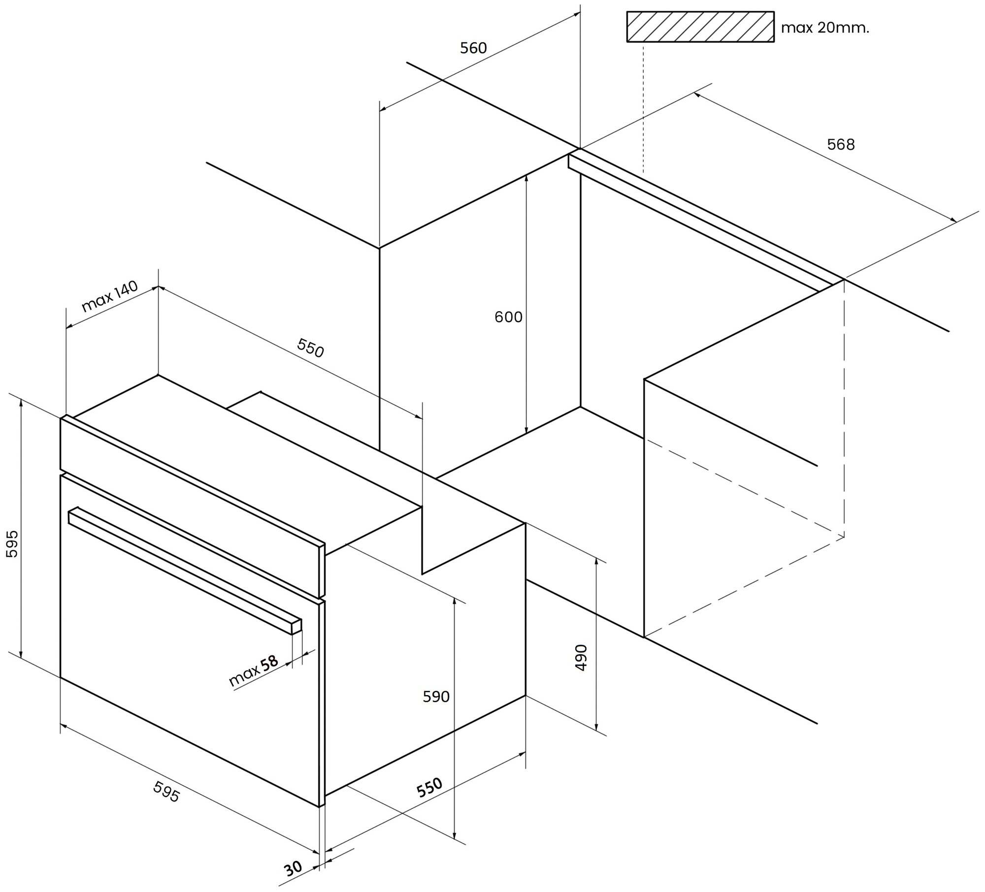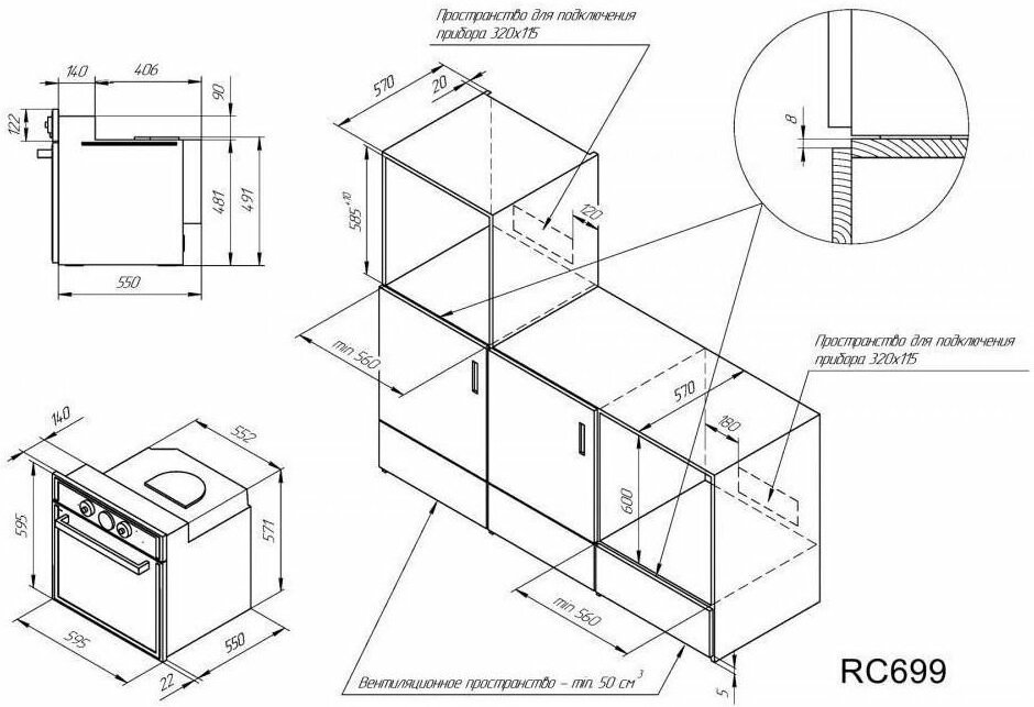 гриль и нижний нагрев, традиционный нагрев с конвекцией; режим турбо; тип часов: аналоговые; вентилятор охлаждения; цвет фурнитуры бронза; очистка духовки гидролизная, каталитическая (задняя стенка); эмаль легкой очистки Crystal Clean; направляющие для противней хромированные, съемные; съемная дверца духового шкафа; доводчик двери, съемное внутреннее стекло; размер ниши для встраивания под столешницу (ВхШхГ), мм 600×560×570; размер ниши для встраивания в колонну (ВхШхГ), мм 585(+10)x560×570; доводчик двери