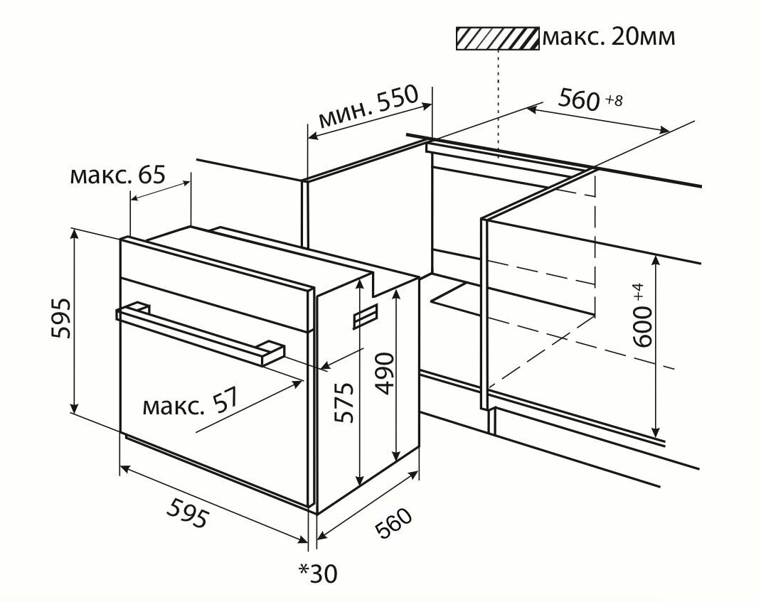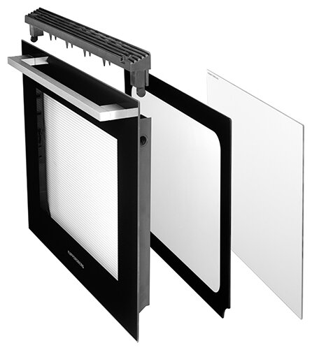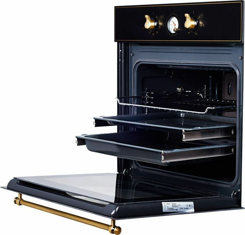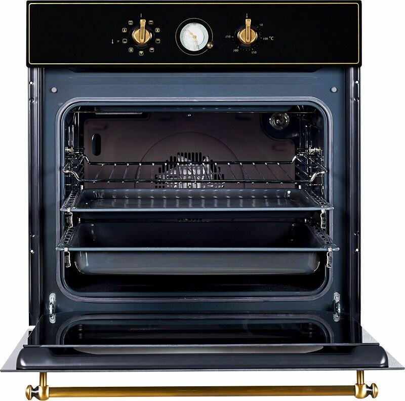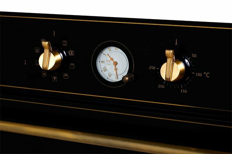 Вентилятор охлаждения, Встроенные часы, Дизайн Ретро, Доводчик дверцы духовки, Полностью стеклянная внутренняя дверца, Хромированные направляющие