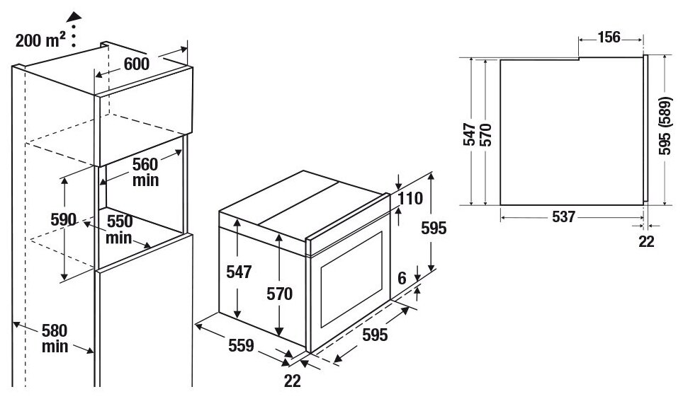 Ширина встраивания (см)