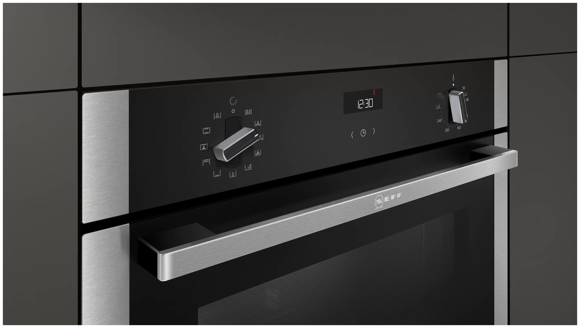 В духовом электрическом встраиваемом шкафу Neff B1ACE3FN0R запрограммировано семь разных режимов приготовления: дли пиццы, брожение для домашних йогуртов и идеального дрожжевого теста, нагрев предметов посуды, разморозка, нижний и верхний жар для стандартного запекания, отдельно нижний жар для нежнейших суфле и открытых пирогов, поддержание заданной температуры, гриль.