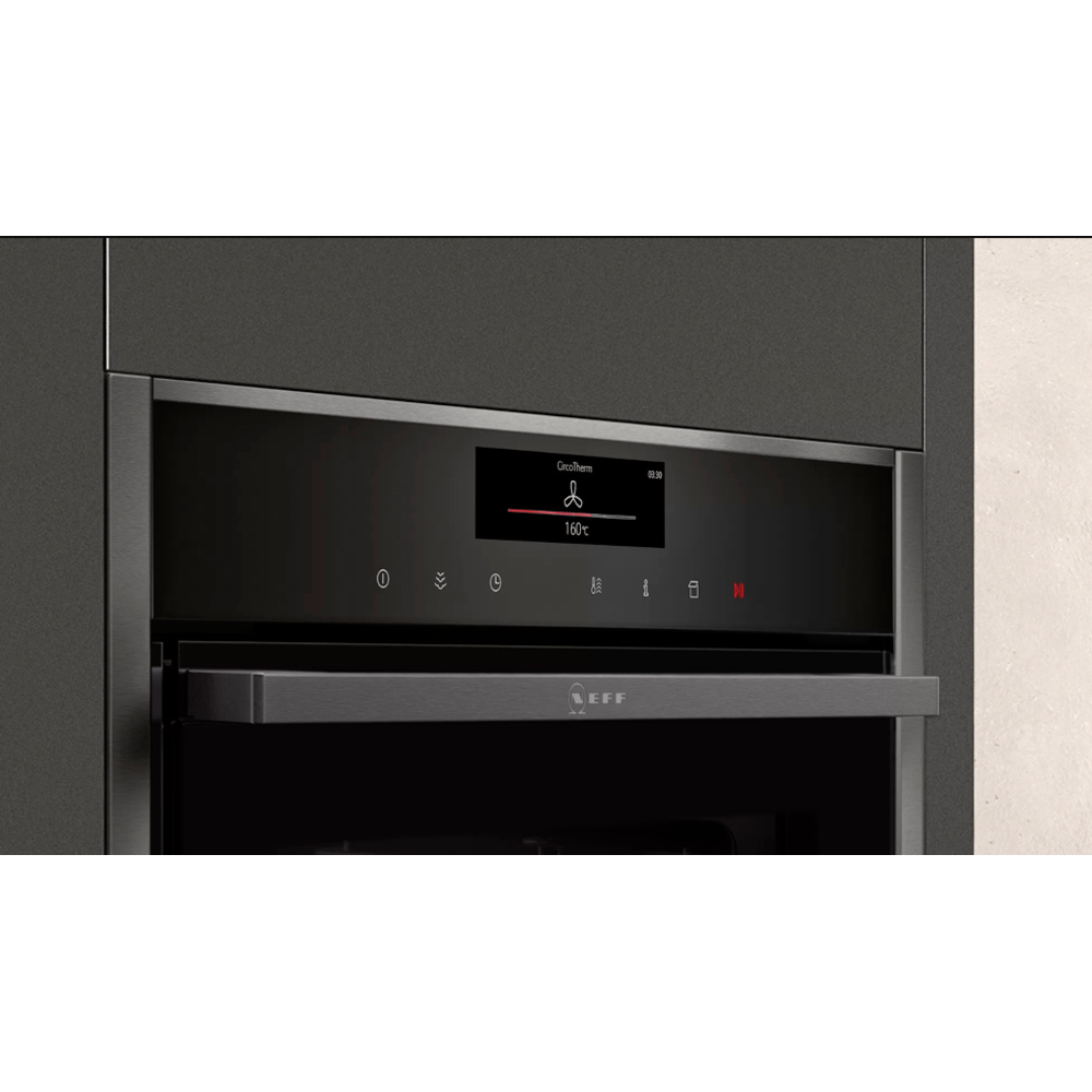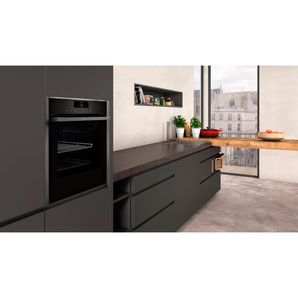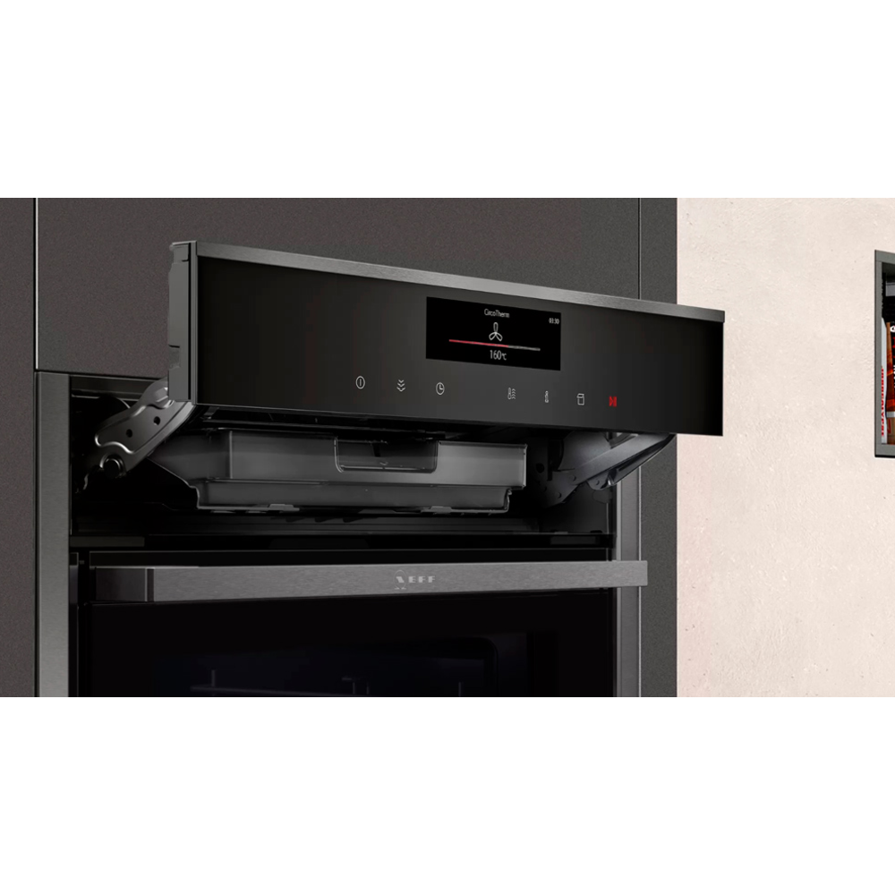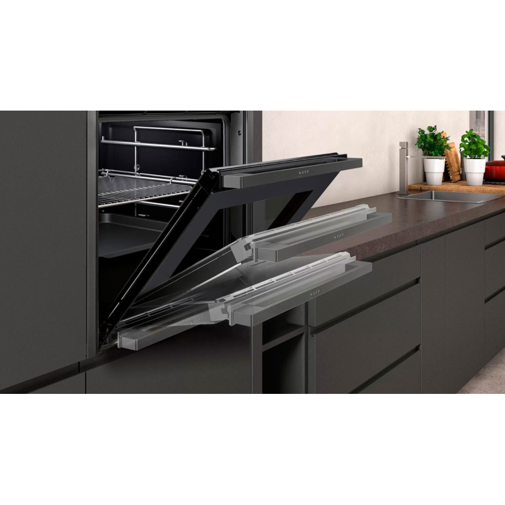 Система очистки Easy Clean Cleaning Assistance Многофункциональные часы EasyClock включают в себя бытовой таймер, таймер приготовления Выдвижная панель управления скрывает резервуар для воды Home Connect через Wi-Fi Глубина при открытой двери: 635 мм Механический и электрический замок NEFFLight®: равномерное освещение всех 4 уровней