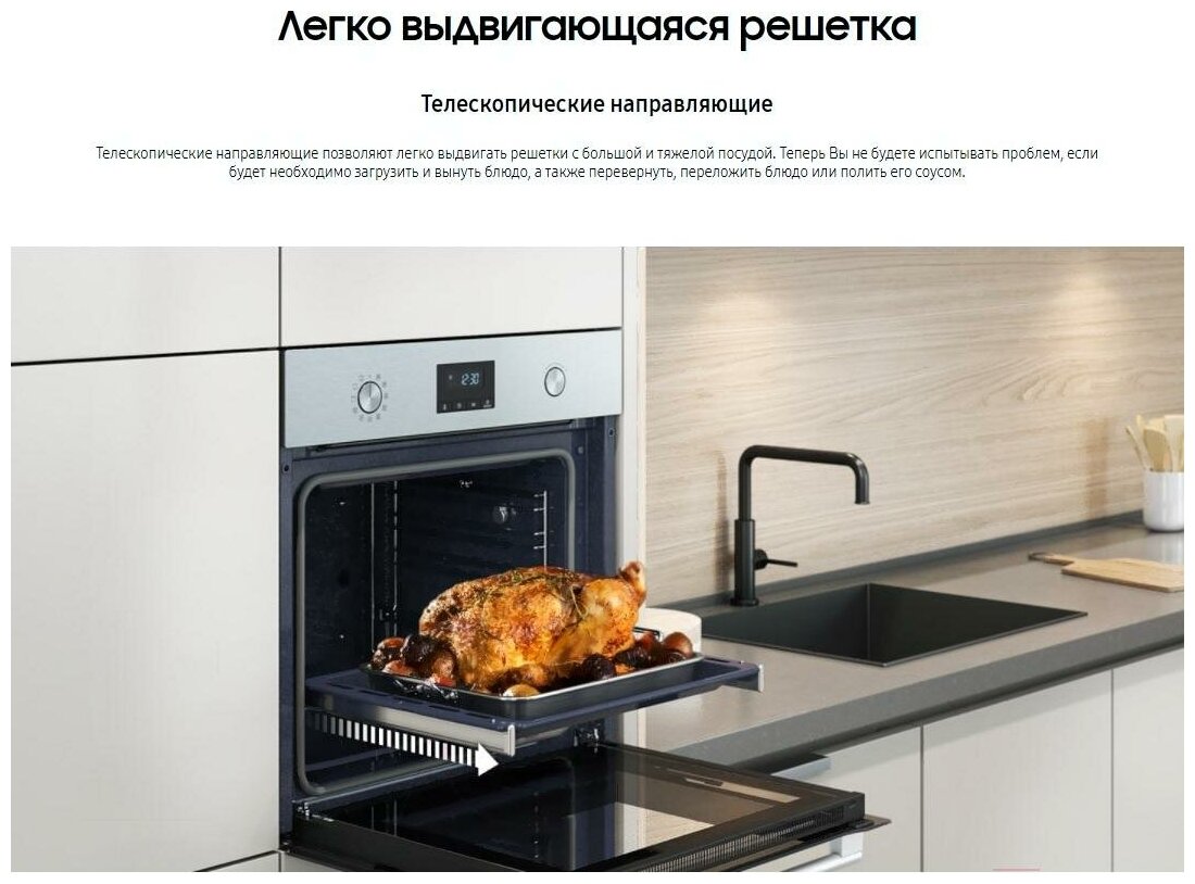 дисплей, телескопические направляющие, часы, Большой внутренний объём 58л, внутреннее покрытие биокерамика, защита от перепадов напряжения, мощная и равномерная конвекция