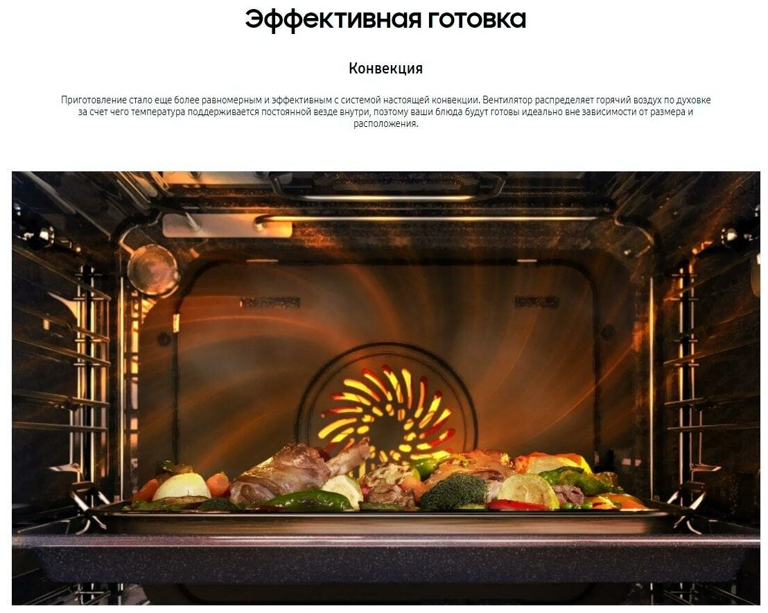 Большой внутренний объём 68л, мощная и равномерная коныекция, таймер, внутреннее покрытие эмаль, каталитическая очистка, сенсорный дисплей Blue Led