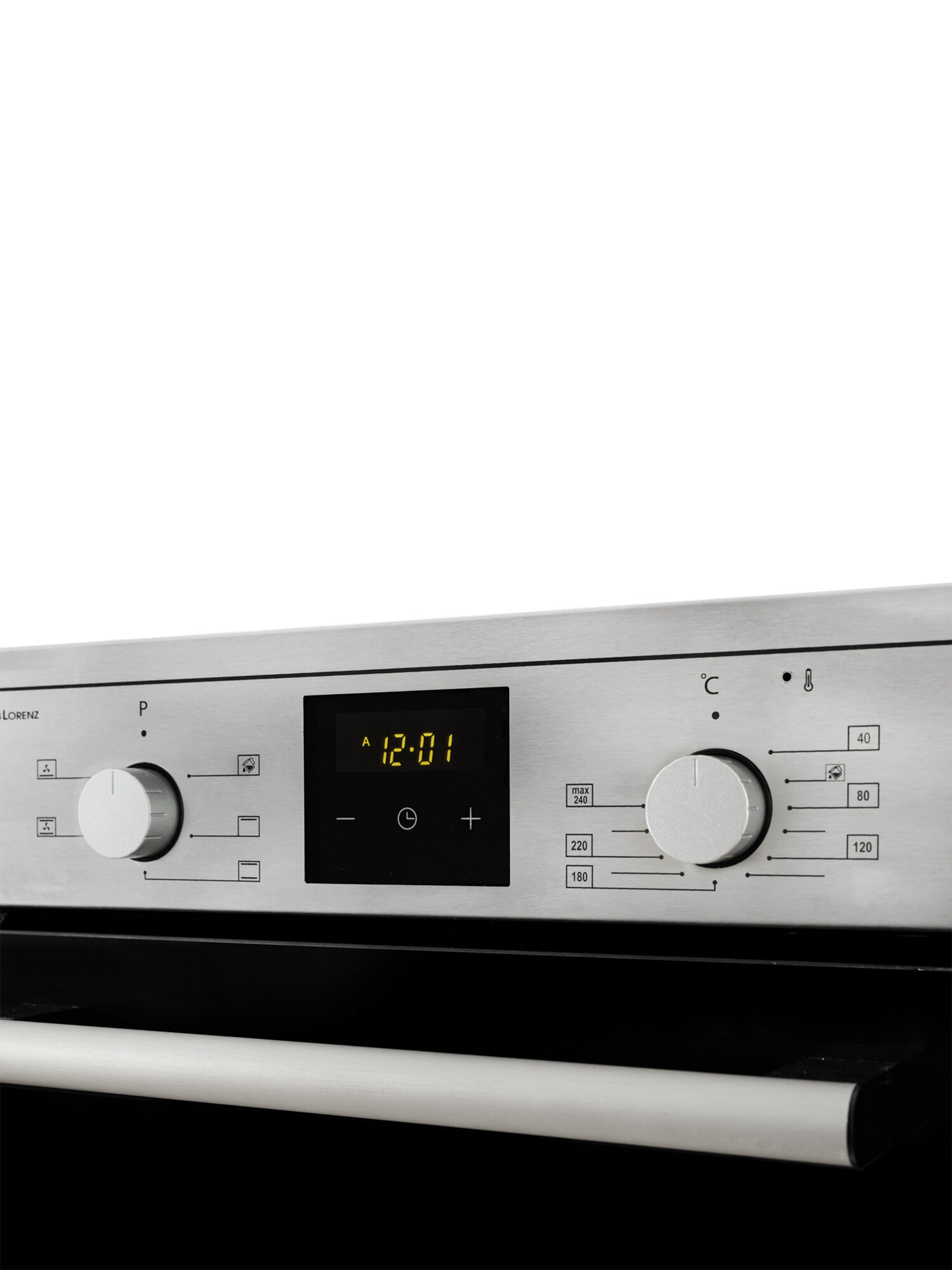 Управление и функции: Переключатели:утапливаемые Максимальная температура: 240 градусов Безопасность: 2-слойное стекло Дополнительная информация: Максимальная мощность, кВт: 2.2 Класс энергоэффективности: A Покрытие духовки: эмаль лёгкой очистки Хромированные направляющие Телескопические направляющие