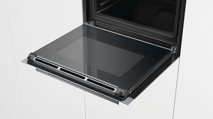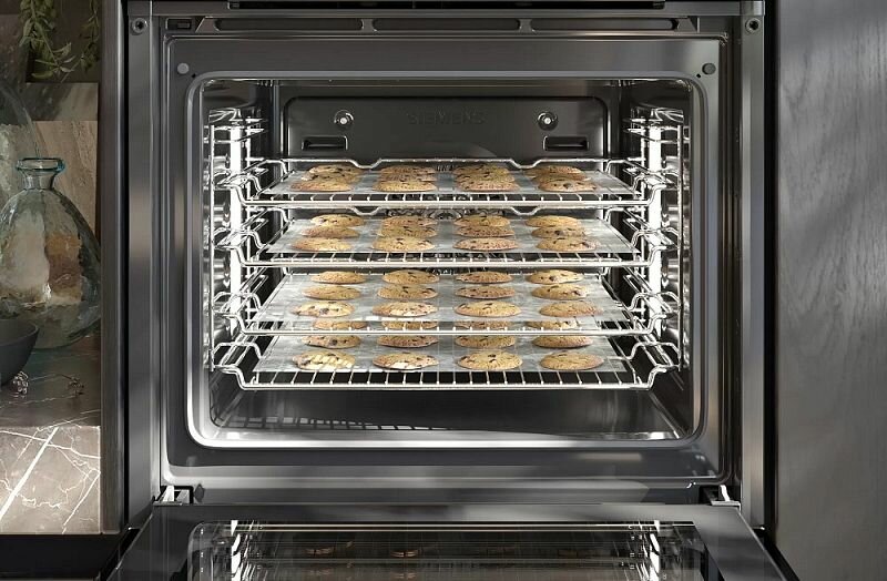 быстрый нагрев, размораживание, таймер, Вентилятор охлаждения, Встроенные часы, Двухуровневое приготовление, Дисплей, Доводчик дверцы духовки, Хромированные направляющие