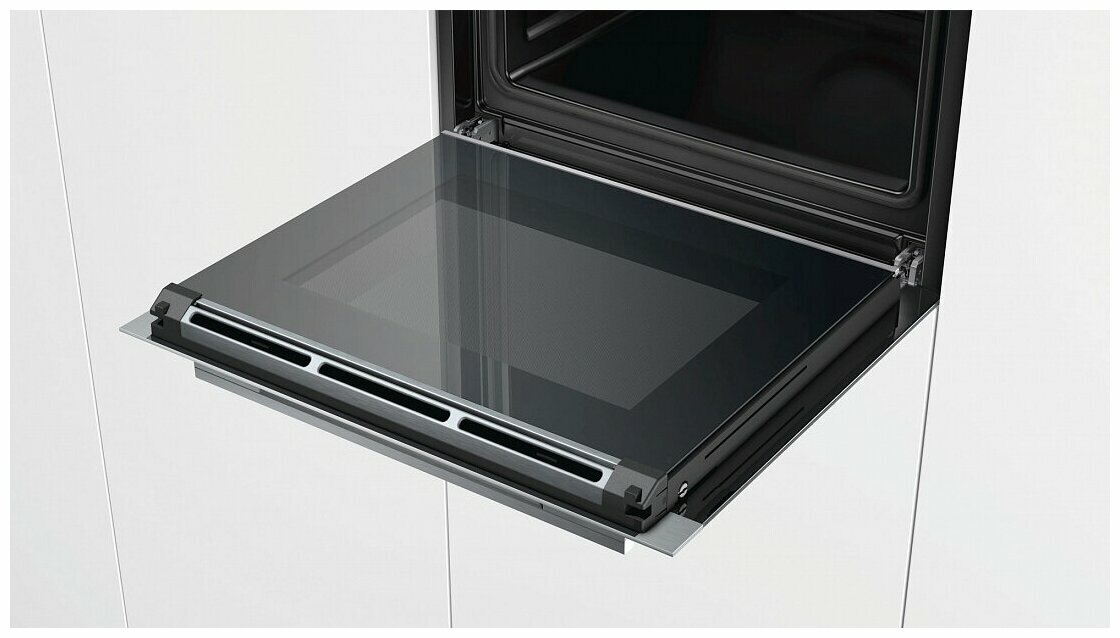 быстрый нагрев, размораживание, таймер, Вентилятор охлаждения, Встроенная книга рецептов, Встроенные часы, Двухуровневое приготовление, Дисплей, Доводчик дверцы духовки, Хромированные направляющие