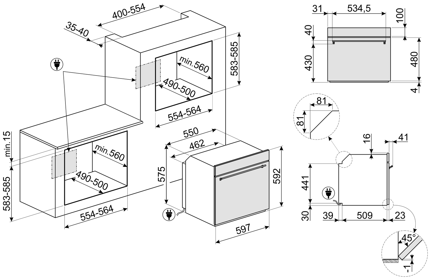 Встраиваемый; Режимов работы - 6 шт.; Электрический гриль; Механическое управление; Индикация - режима работы/звуковая/включения; Защитное покрытие от отпечатков пальцев; Вентилятор охлаждения; Кабель без вилки; Металлические направляющие; Галогеновая подсветка