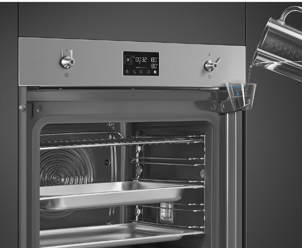 быстрый нагрев, размораживание, таймер, Вентилятор охлаждения, Встроенные часы, Встроенный парогенератор, Двухуровневое приготовление, Дисплей, Доводчик дверцы духовки, Защитное покрытие от отпечатков пальцев, Полностью стеклянная внутренняя дверца, Термощуп