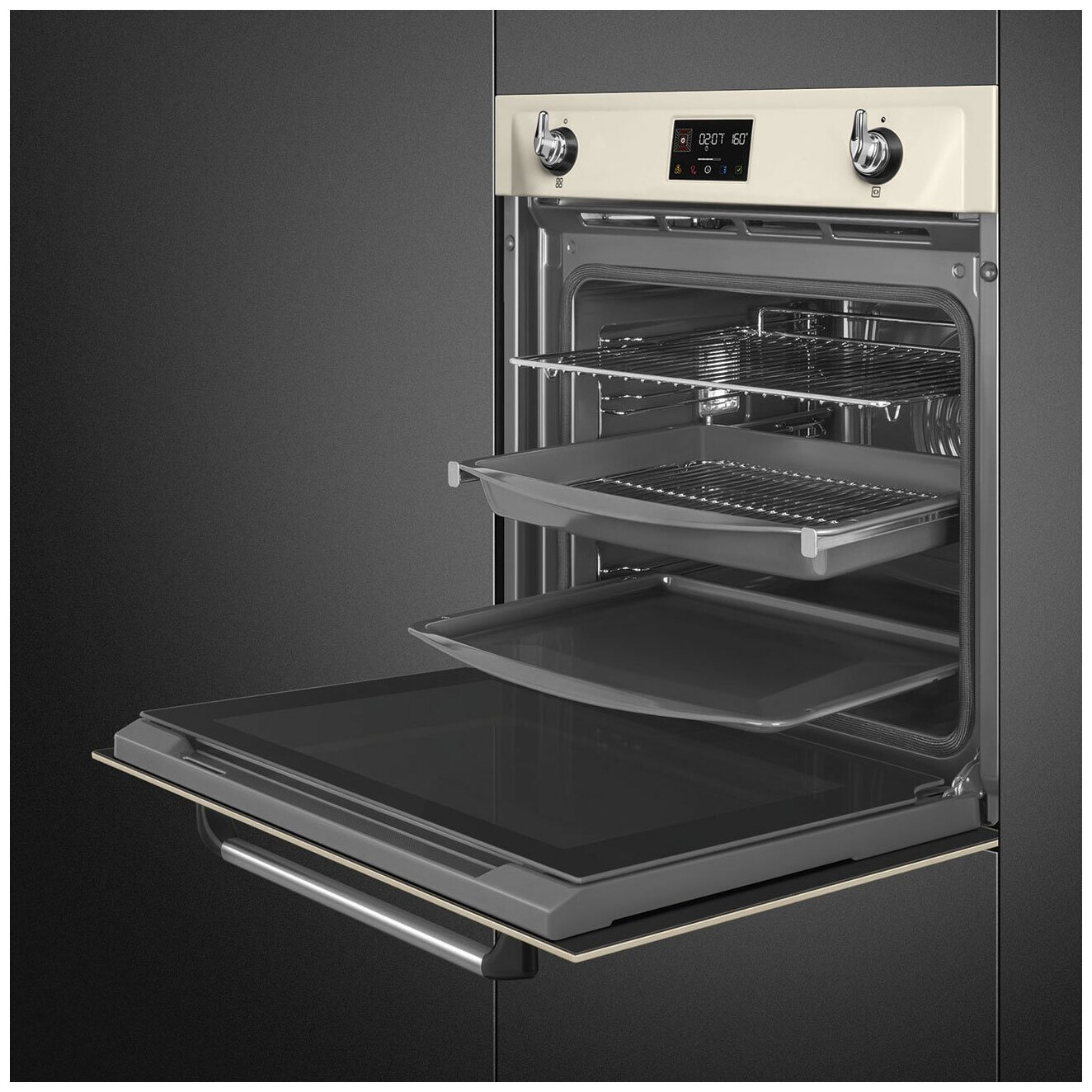 быстрый нагрев, добавление пара, поддержание тепла, размораживание, таймер, функция пароварки, экорежим, Вентилятор охлаждения, Встроенные часы, Встроенный парогенератор, Двухуровневое приготовление, Дисплей, Доводчик дверцы духовки, Полностью стеклянная внутренняя дверца, режим декальцинации