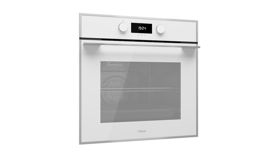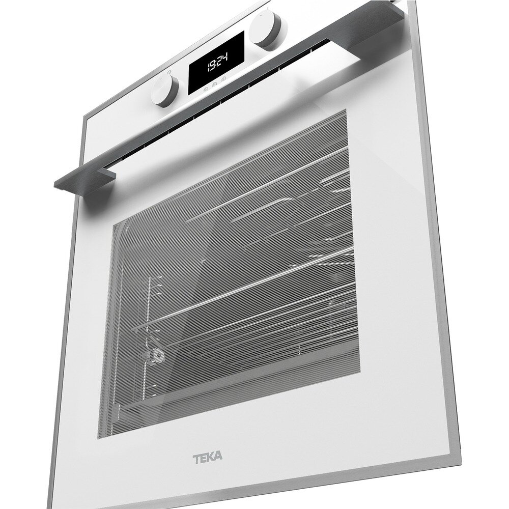 Оформленный в белом цвете, имеющий стальные раму и фурнитуру, а также дополненный современной стеклянной панелью с бело-красным дисплеем, духовой шкаф TEKA HLB 850 WHITE-SS становится стильным дополнением и акцентом интерьера кухни.