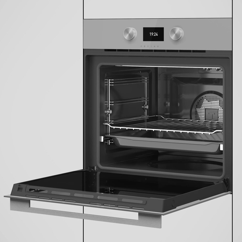 быстрый нагрев, размораживание, таймер, Вентилятор охлаждения, Встроенные часы, Дисплей, Доводчик дверцы духовки, Хромированные направляющие