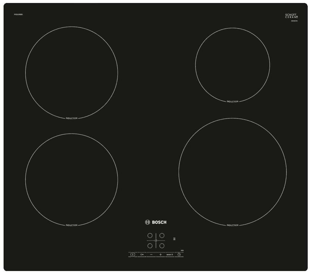защитное отключение конфорок, индикатор остаточного тепла, кнопка блокировки панели