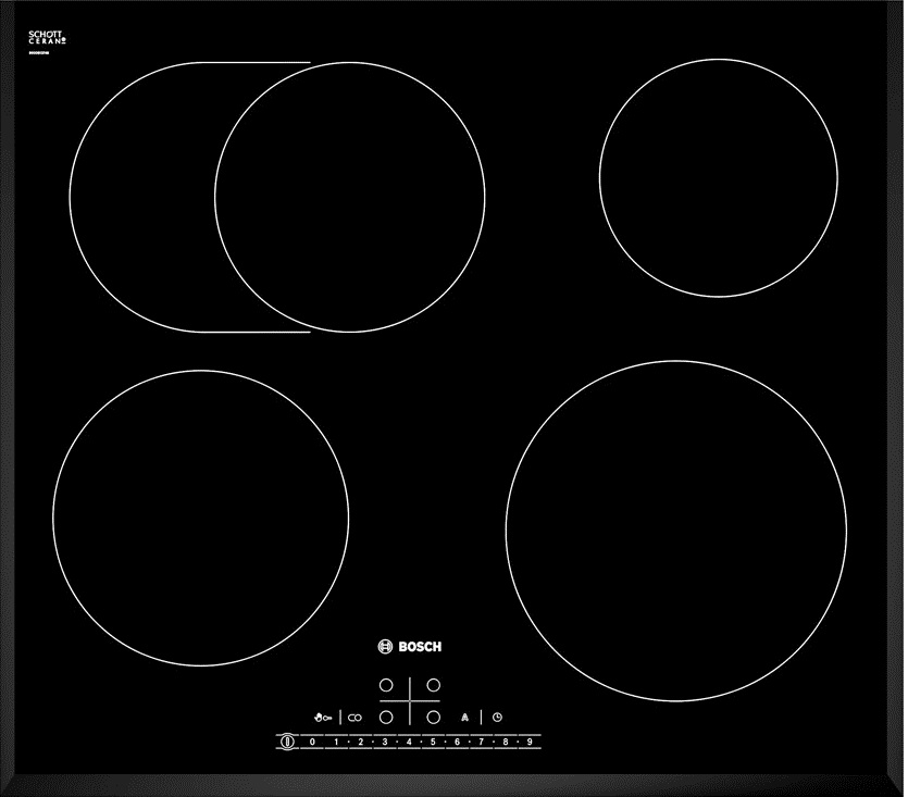 Независимая электрическая варочная панель Bosch PKB651F17 изготовлена из стеклокерамики. Скошенный край без металлического каркаса обеспечивает оптимальное прилегание к столешнице.