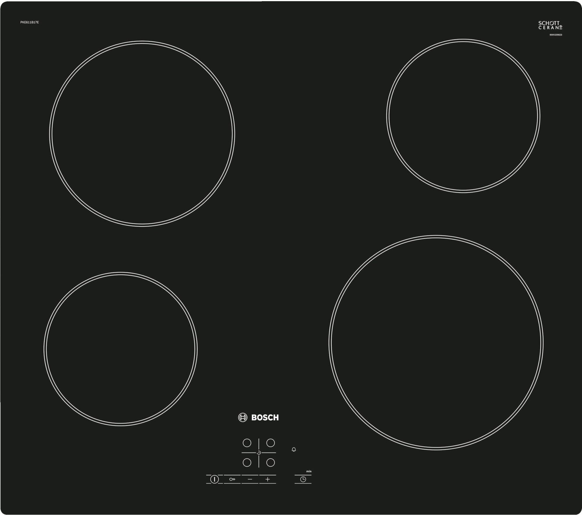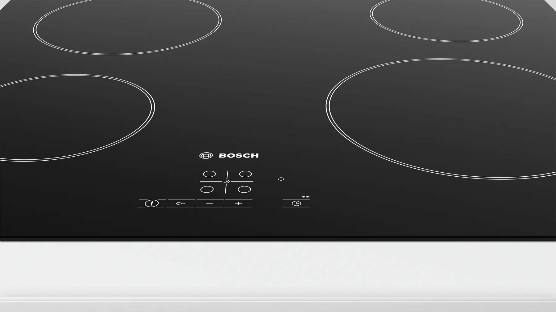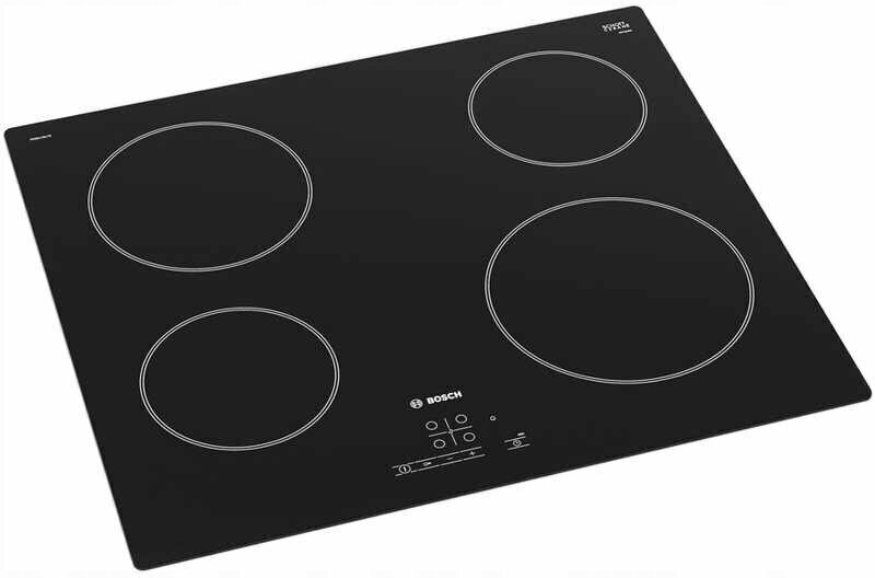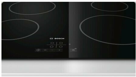 Электрическая варочная панель Bosch PKE611B17E имеет классический электрический нагрев, при котором сначала нагреваются плиты (а точнее скрытые под поверхностью элементы), а затем это тепло передается кастрюлям.