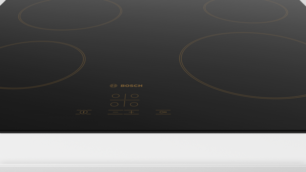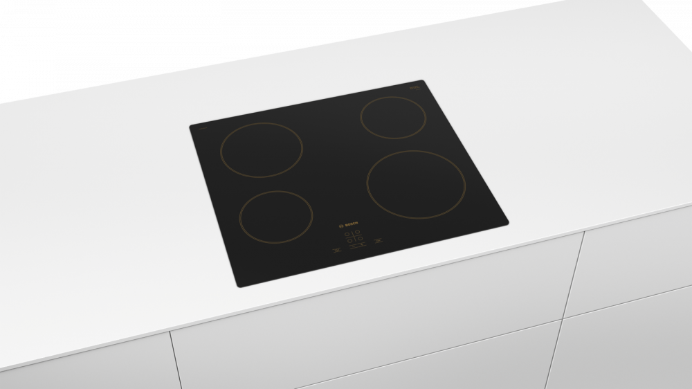 Электрическая варочная панель Bosch PKE611BA1R имеет классический электрический нагрев, при котором сначала нагреваются конфорки (или элементы, спрятанные под поверхностью), а затем это тепло передается посуде. Ею легко научиться даже пожилые люди, привыкшие к плитам. Количество конфорок в данной модели: 4.