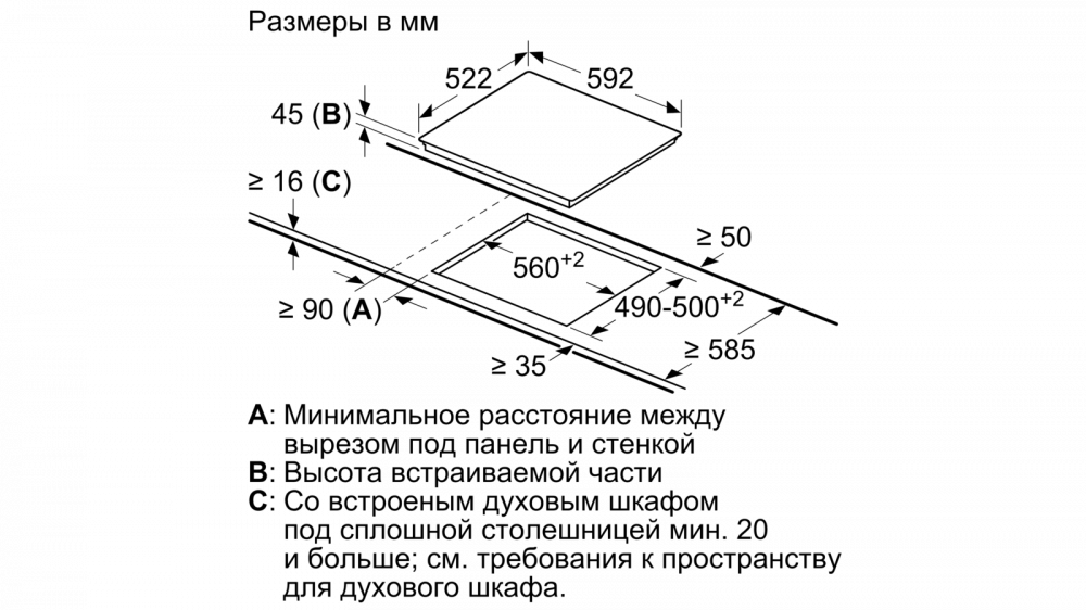 Ширина встраивания (см)