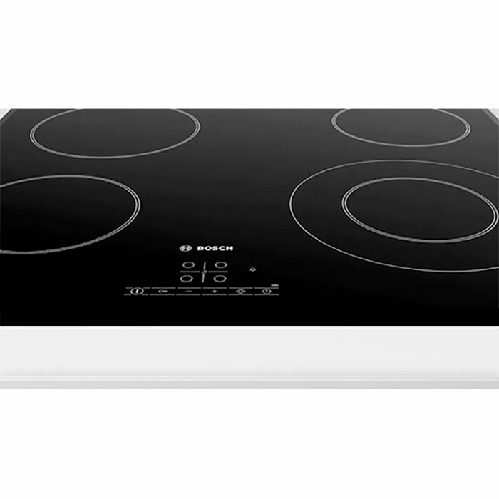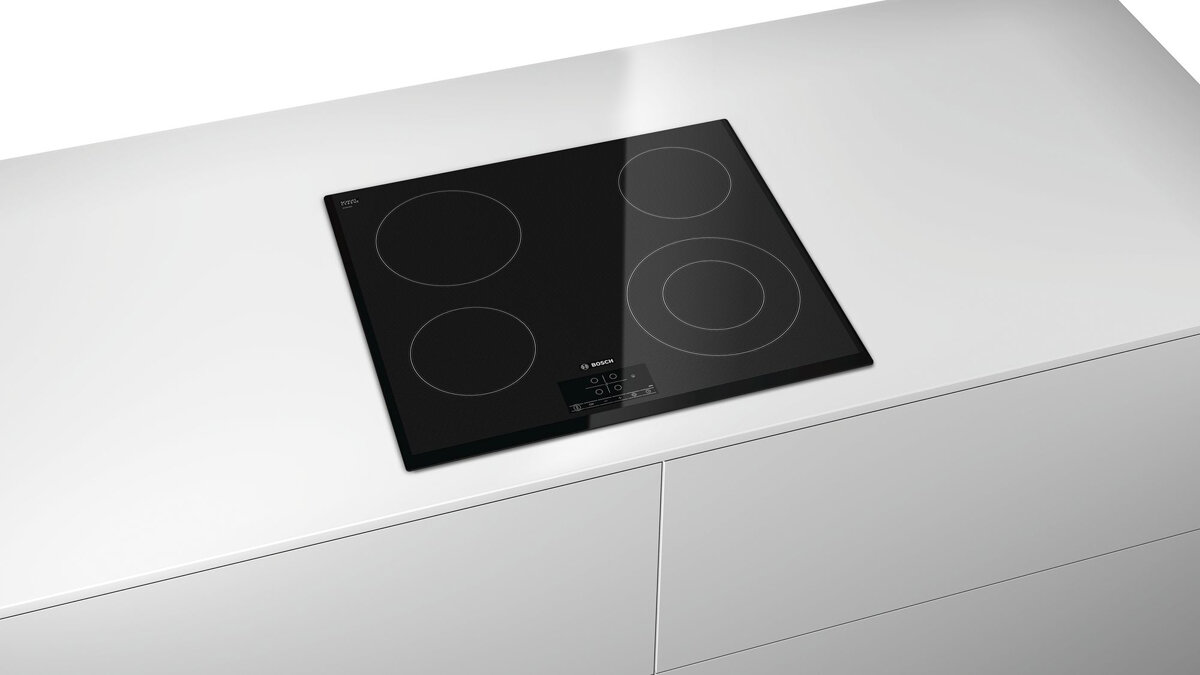 Bosch PKF651B17 - стеклокерамическая плита с сенсорным управлением TouchSelect. Модель оснащена четырьмя электрическими конфорками Hi-Light, одна из которых имеет круглую зону расширения. Черная стеклокерамика - самое распространенное решение для любой кухни. Скошенный край придает модели изящный вид и облегчает чистку.