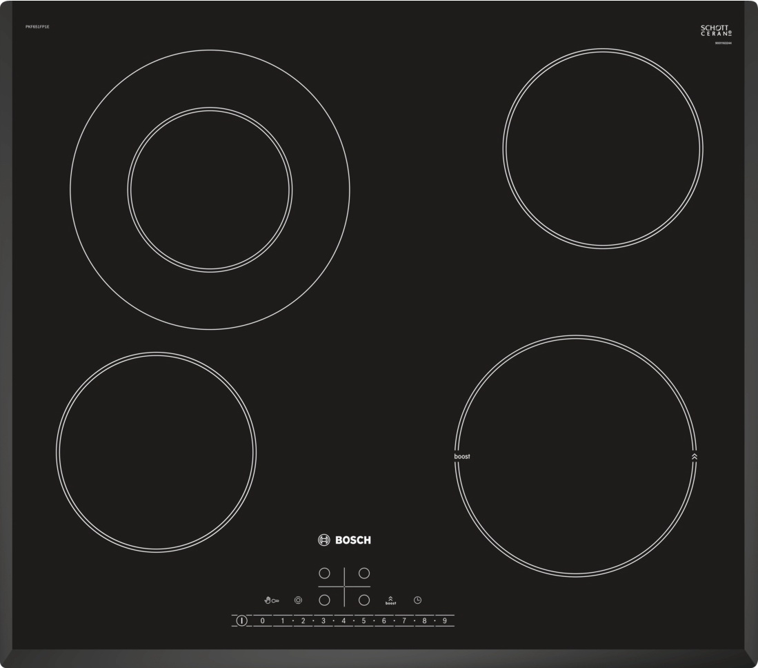 Стеклокерамическая варочная панель Bosch PKF651FP1Eотдельно стоящего типа. Модель оборудована четырьмя горелками, одна из которых с круглой зоной расширения. Усовершенствованная система управления DirectSelect дополняется дисплеем фазы прогрева TopControl. Благодаря наличию 17 уровней мощности можно максимально точно установить температуру приготовления.
