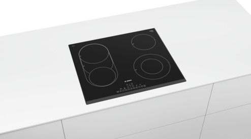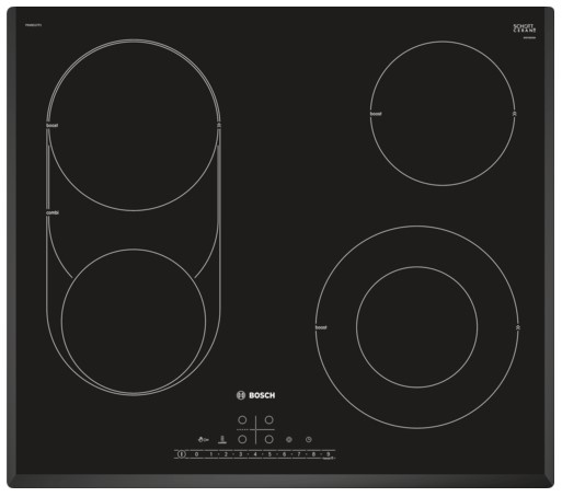 Bosch PKM651FP1 - стеклокерамическая плита со скошенными краями. В модели предусмотрено наличие комбинированной зоны нагрева CombiZone.