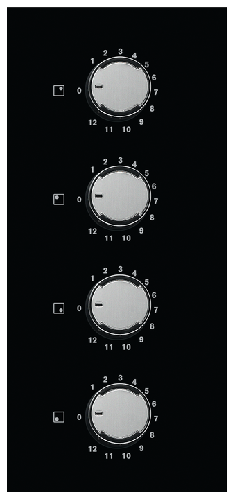 две конфорки диаметром 14,5 см, две конфорки диаметром 18 см