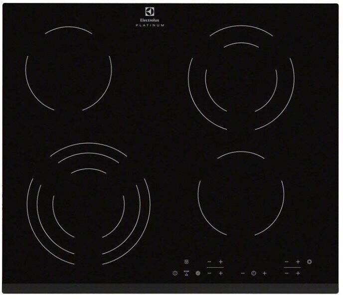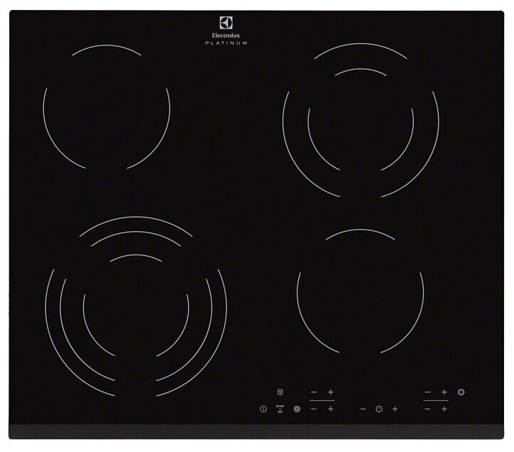 защитное отключение конфорок, индикатор остаточного тепла, кнопка блокировки панели