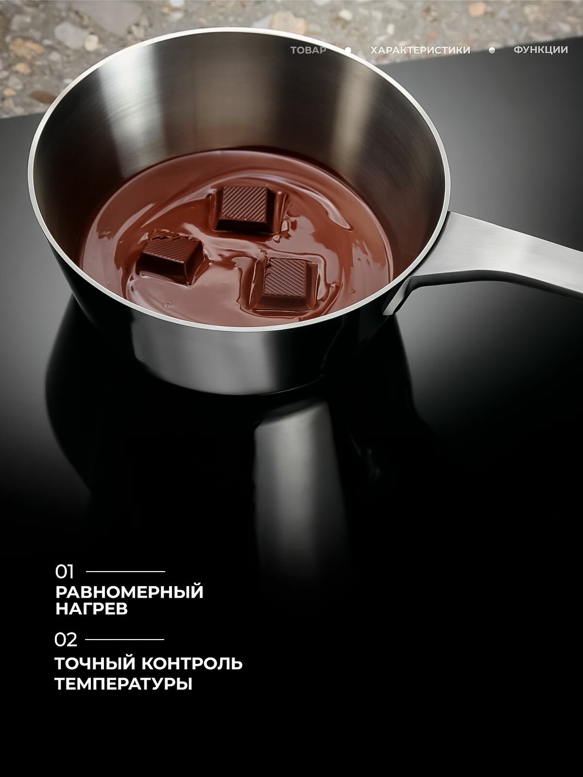 кратковременная пауза, наличие вытяжки, распознавание наличия посуды, таймер, функция Booster, Быстрый нагрев, Индукционный мост