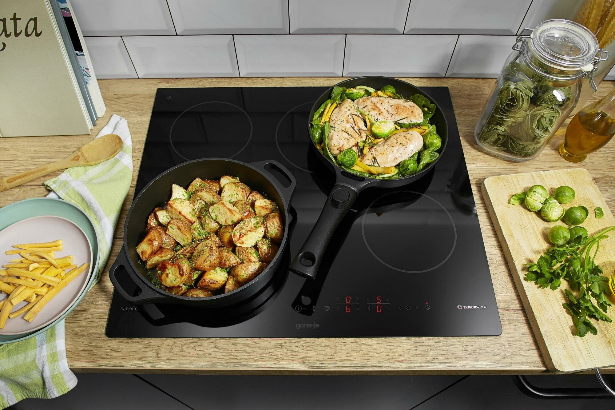 Установка вровень со столешницей; Электронное управление; Самодиагностика неисправности; Расширенная зона на 2 конфорки; Цифровой дисплей; Отключение при проливе жидкости; Блокировка от детей; Индикация выбранной мощности