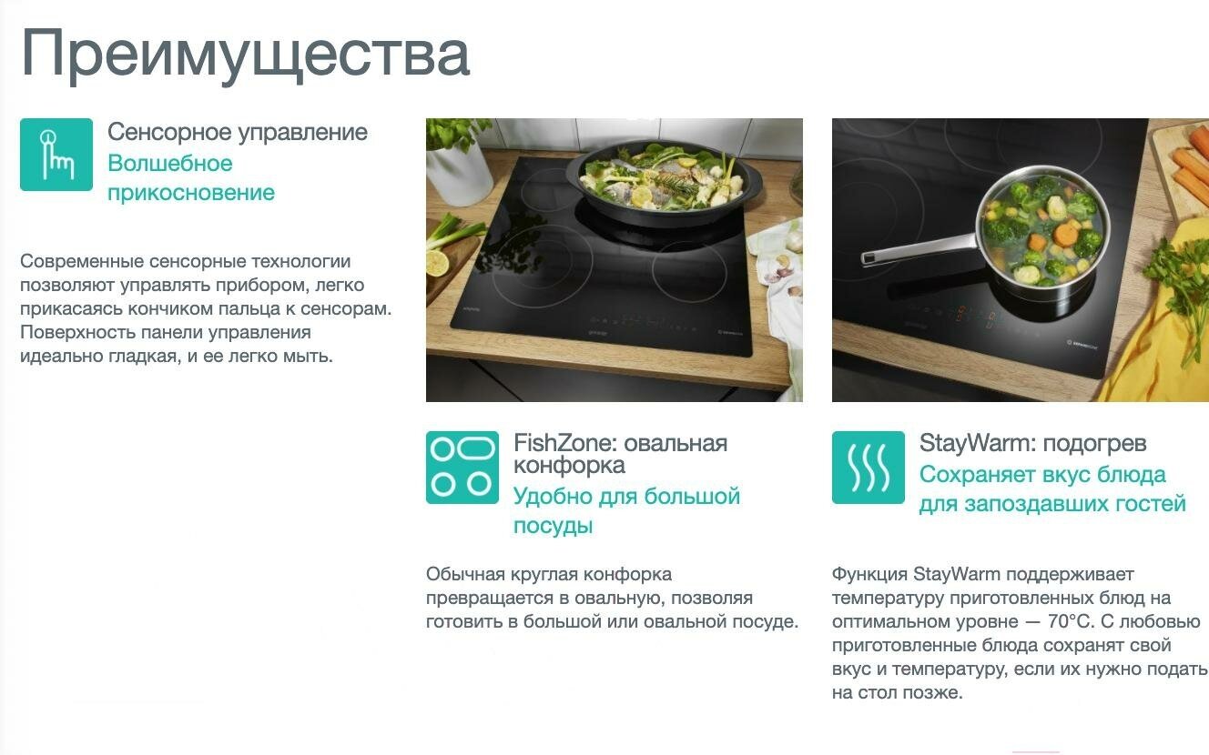 импульсный индукционный нагрев, Go. Функция подогрева StayWarm., Функция Stop&, Функция Stop&Go. Функция подогрева StayWarm., аварийное отключение зон нагрева, быстрый нагрев, защита от детей, защита от детей, овальная конфорка, защита от перегрева, звуковые сигналы, индикаторы остаточного тепла, блокировка от детей, индикация работы, овальная конфорка, поддержание тепла