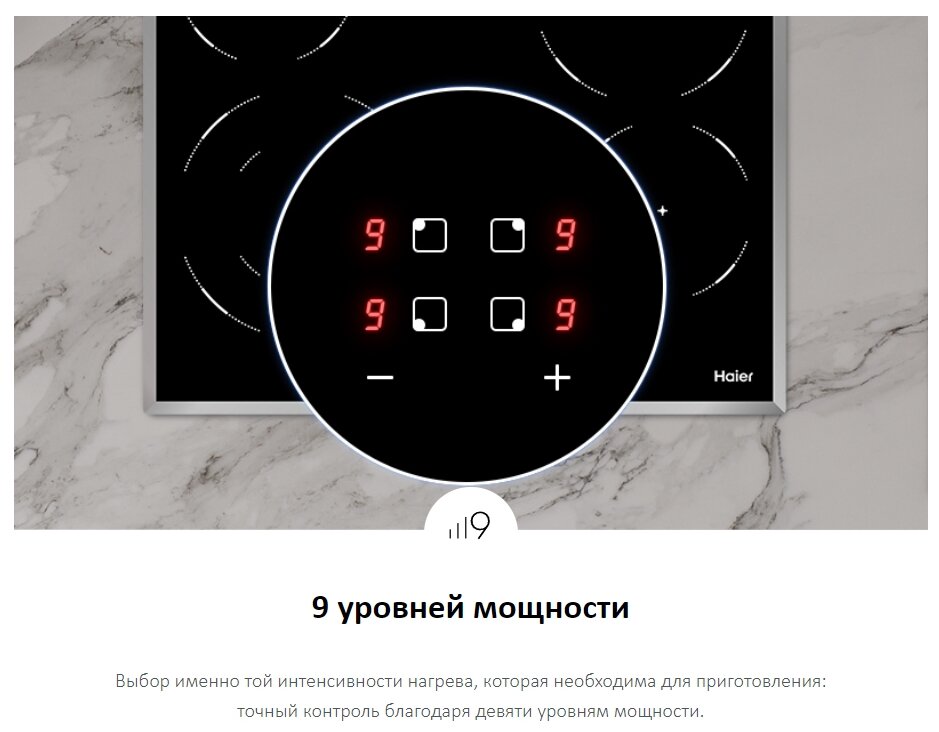 9 уровней мощности, Количество уровней мощности 9, индикаторы остаточного тепла, блокировка от детей, индикаторы остаточного тепла, блокировка от детей,, металлическая рамка