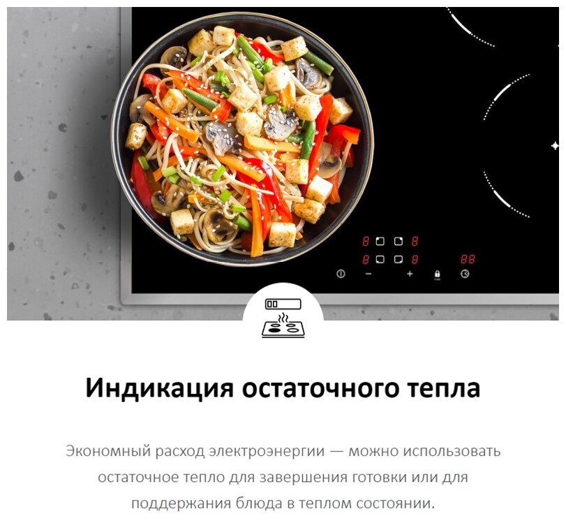 защитное отключение конфорок, индикатор остаточного тепла, кнопка блокировки панели, Автоотключение, Блокировка кнопки включения, блокировка управления (защита от детей)