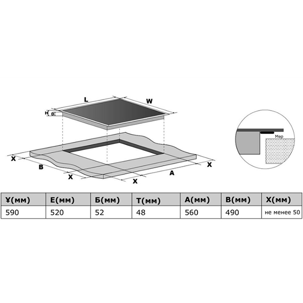 Ширина встраивания (см)