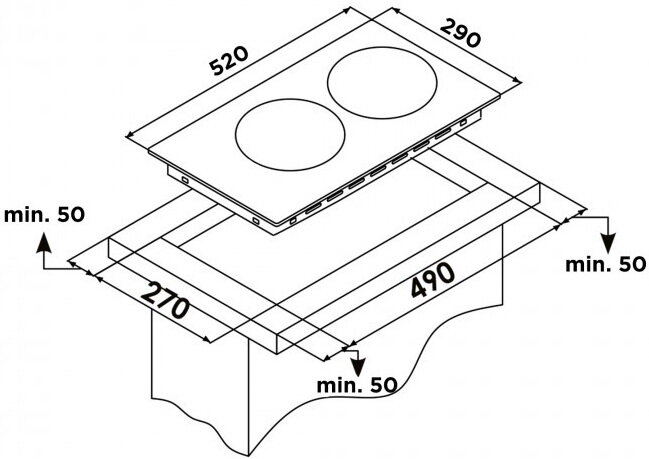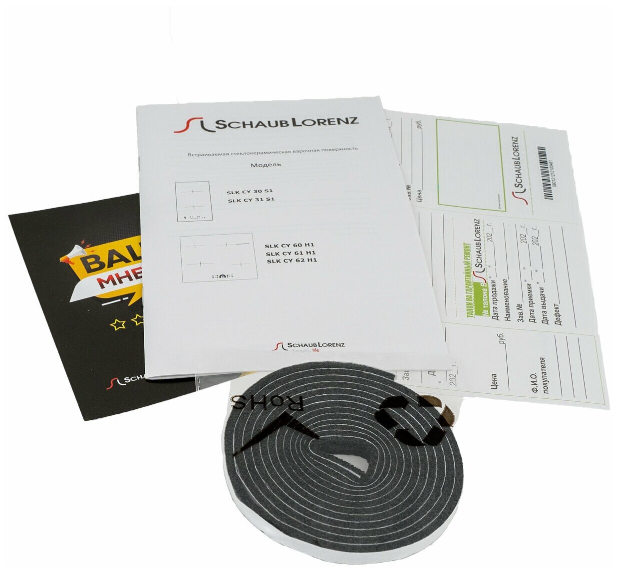 Комплектация: уплотнительная лента для монтажа, крепления и болты для столешницы, кабель питания, инструкция, руководство по подключению, гарантийный талон