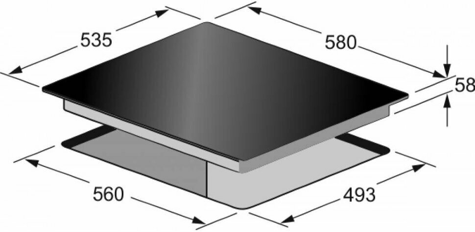 1 × Ø 23,0/ 16,0/ 12,0 cm – 2,3/ 1,6/ 0,8 kW – Triple heating zone 1 × Ø 20,0 cm – 1,8 kW 2 × Ø 16,5 cm – 1,2 kW